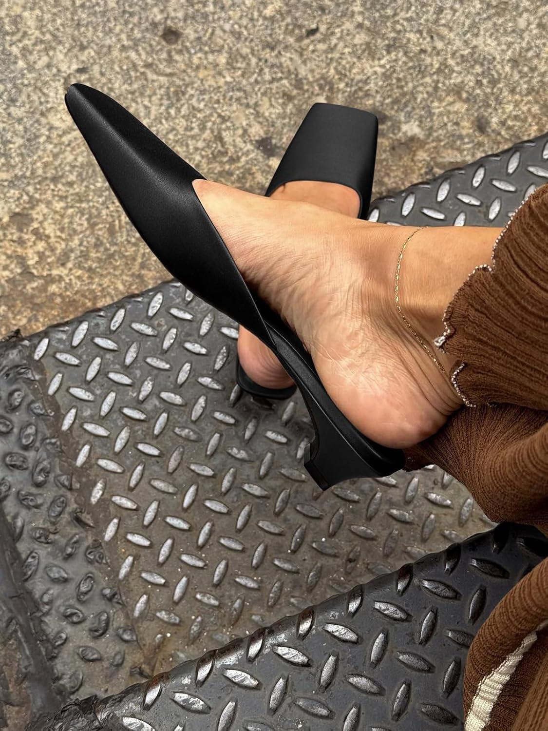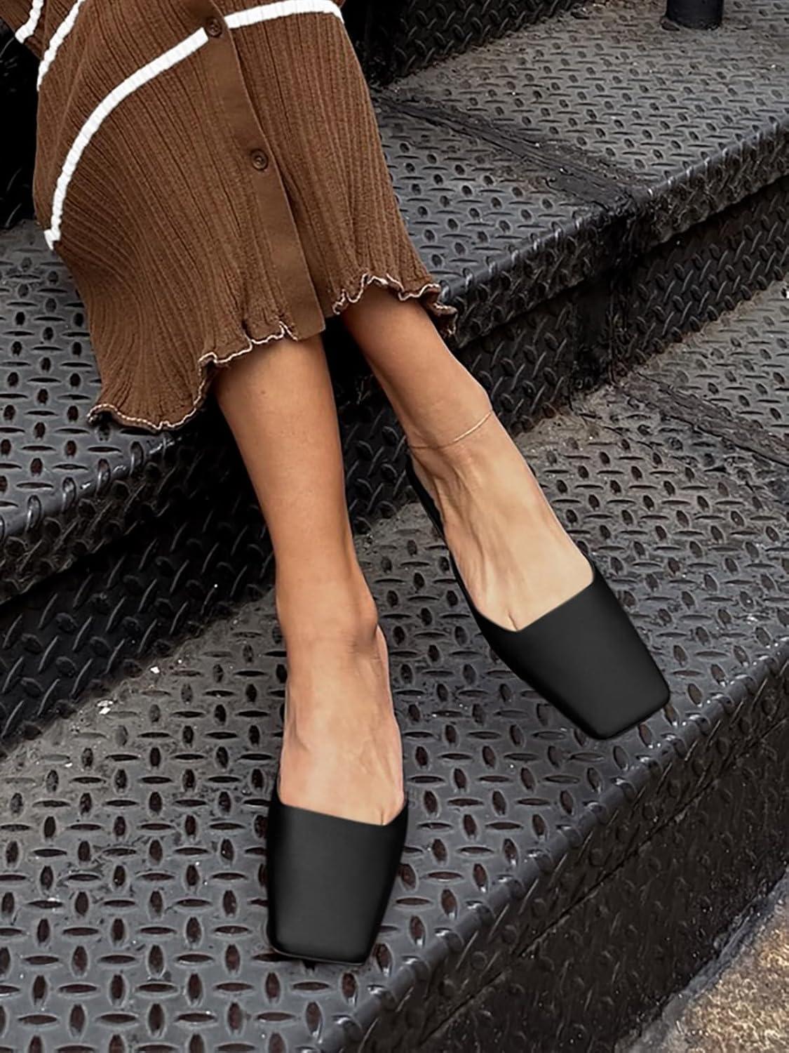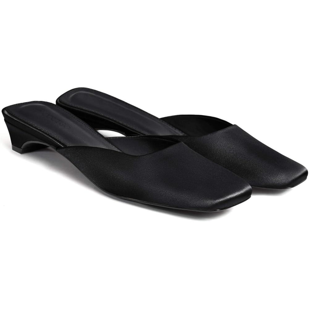 Coutgo Women’s Mules Low Kitten Heel Closed Square Toe Slip On Backless Dress Shoes,Size Fits Large(Black)