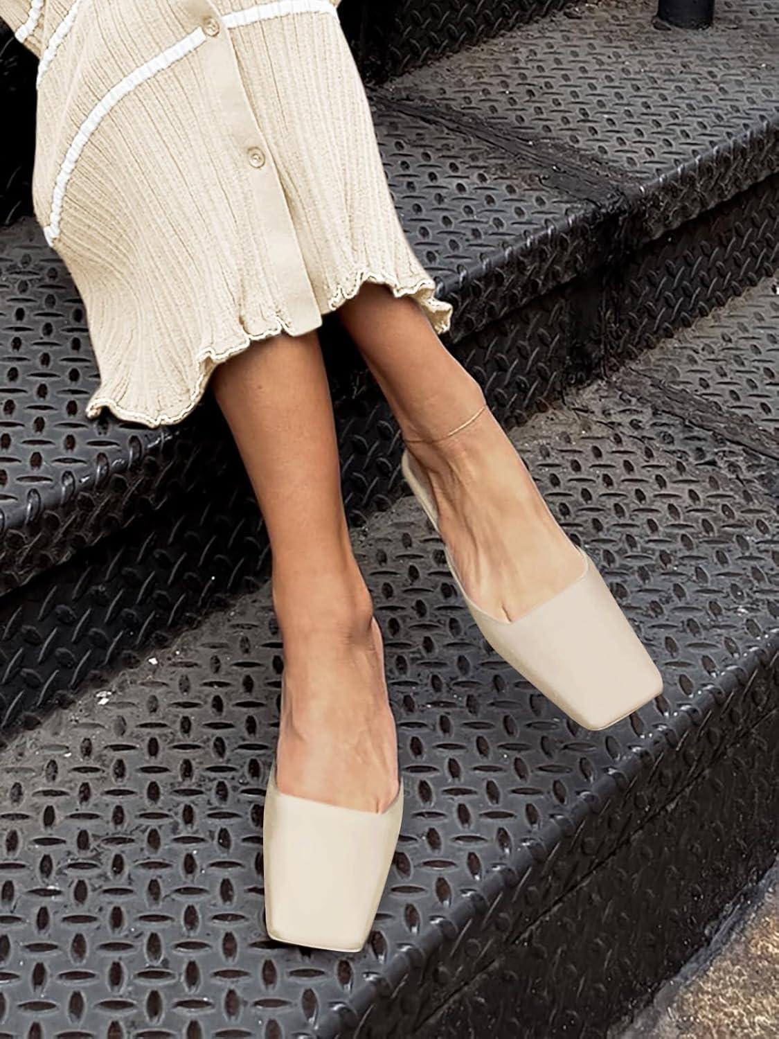 Coutgo Women’s Mules Low Kitten Heel Closed Square Toe Slip On Backless Dress Shoes,Size Fits Large(Champagne)