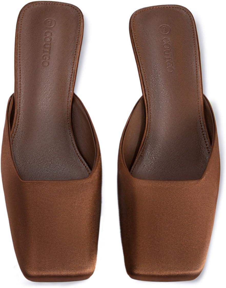 Coutgo Women’s Mules Low Kitten Heel Closed Square Toe Slip On Backless Dress Shoes,Size Fits Large(Coffee)