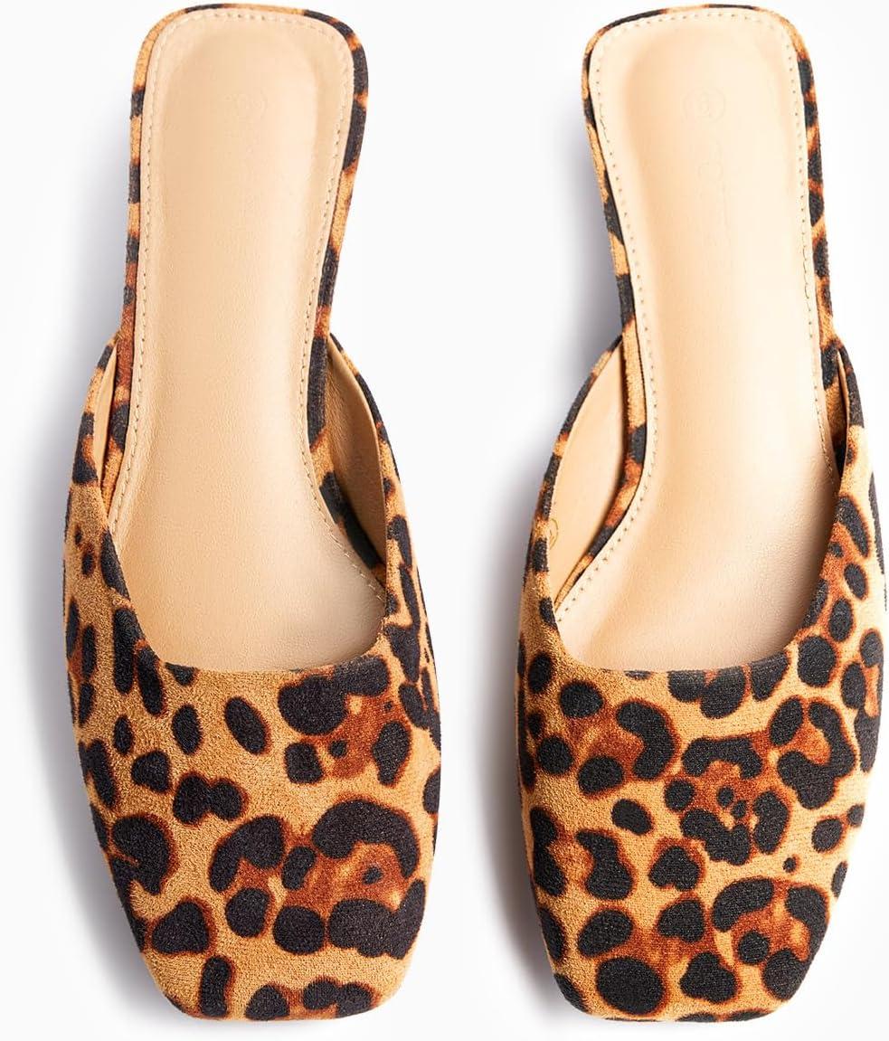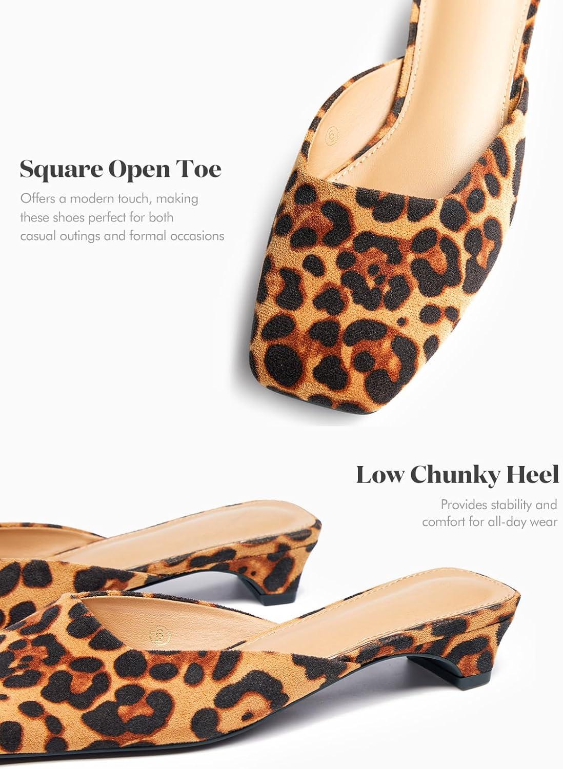 Coutgo Women’s Mules Low Kitten Heel Closed Square Toe Slip On Backless Dress Shoes,Size Fits Large(Leopard Color)