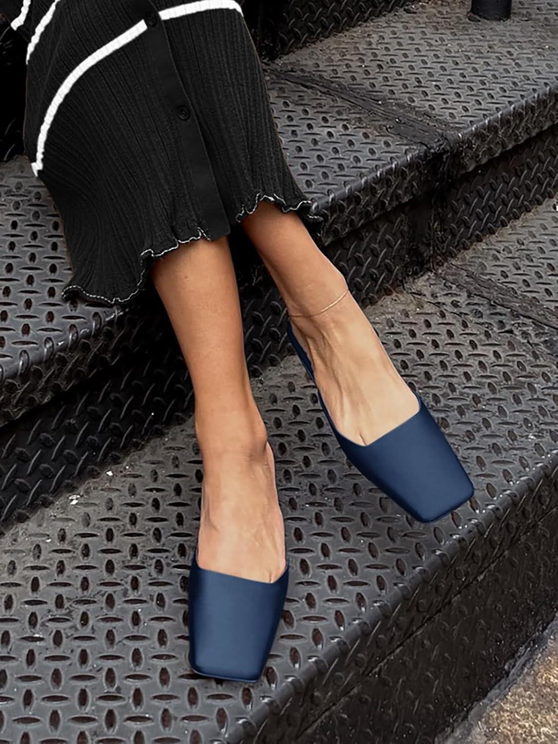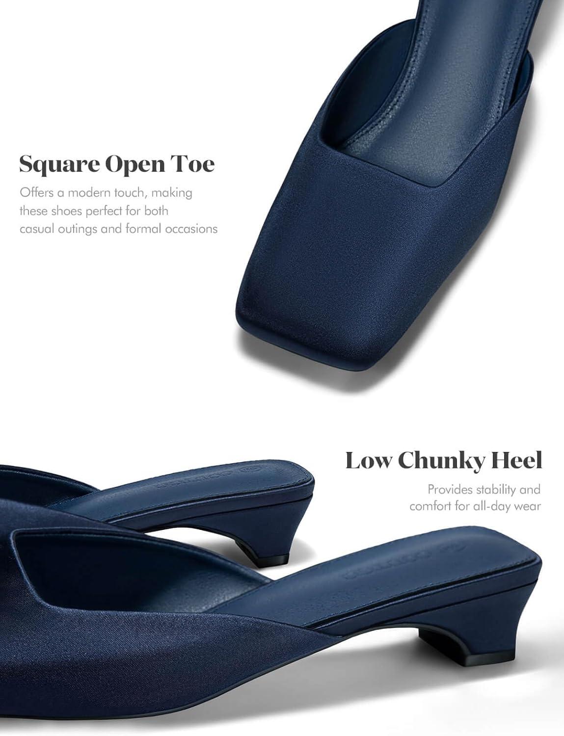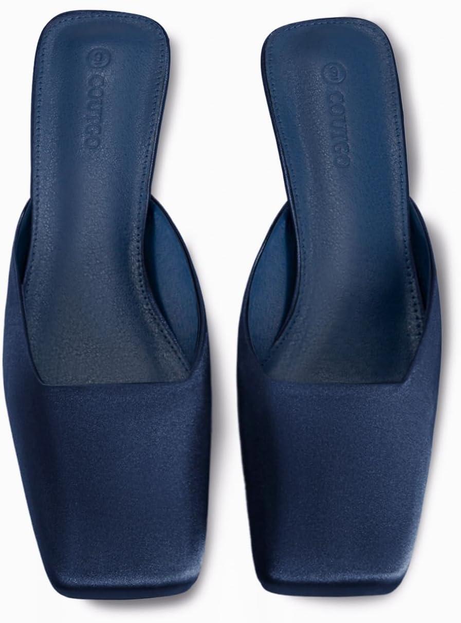 Coutgo Women’s Mules Low Kitten Heel Closed Square Toe Slip On Backless Dress Shoes,Size Fits Large(Navy)