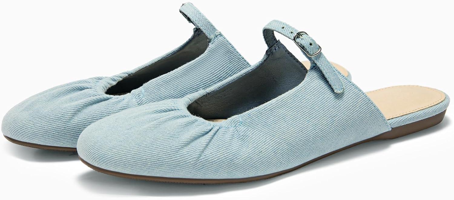 Coutgo Womens Mules Mary Jane Flats Closed Toe Pleated Slip on Shoes Dressy Casual Slides(Blue)