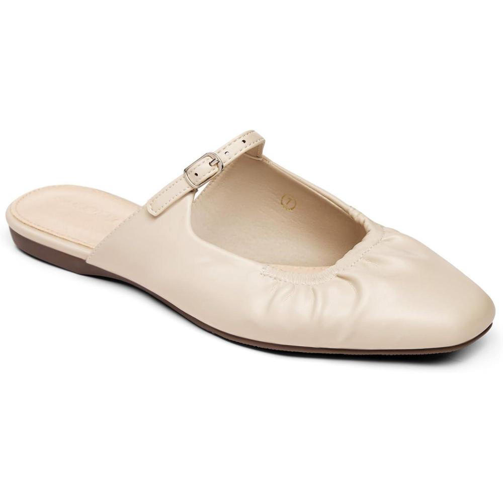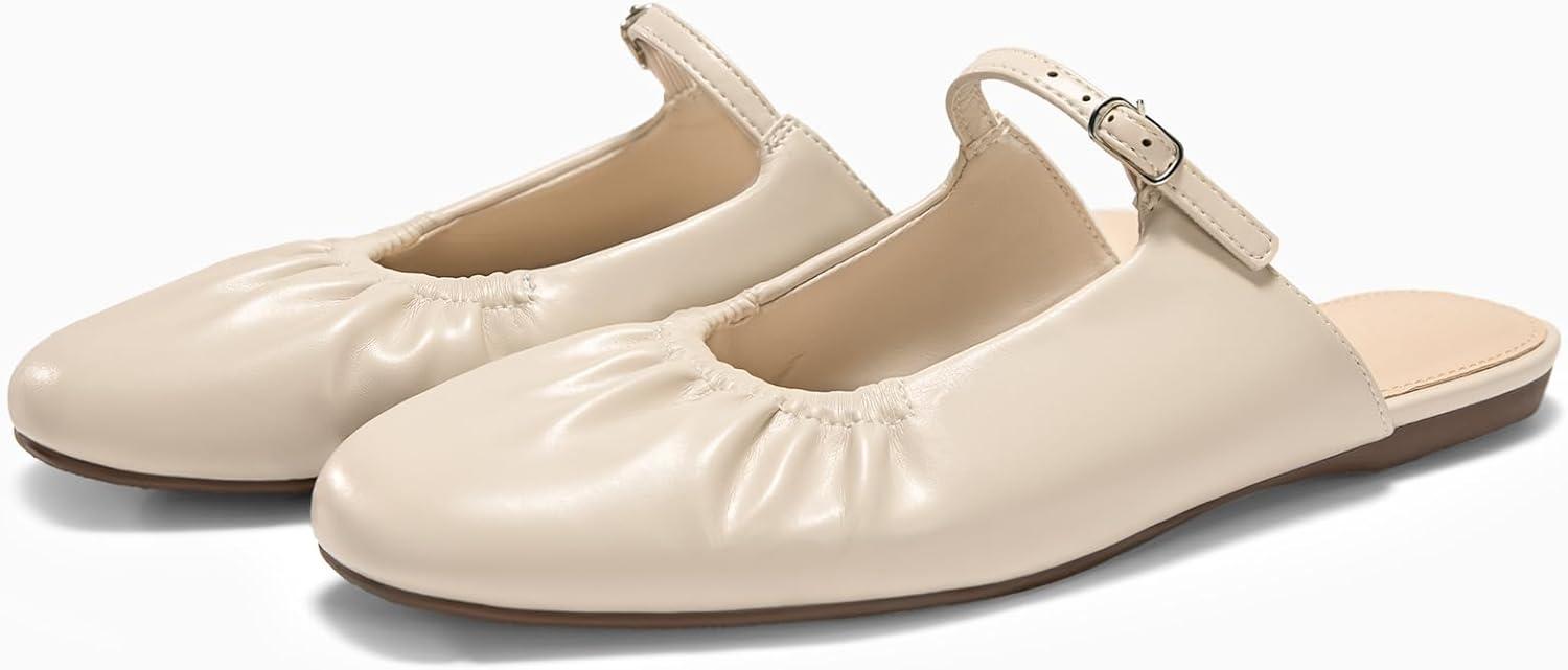Coutgo Womens Mules Mary Jane Flats Closed Toe Pleated Slip on Shoes Dressy Casual Slides(Nude)