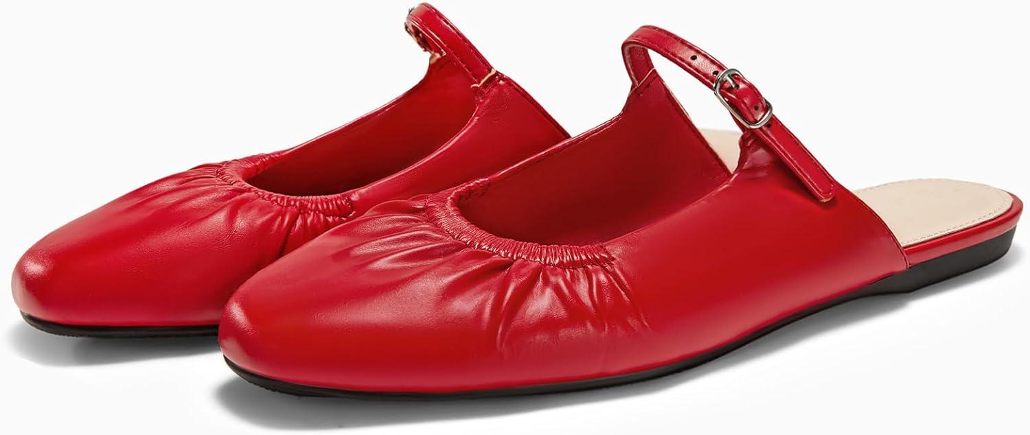 Coutgo Womens Mules Mary Jane Flats Closed Toe Pleated Slip on Shoes Dressy Casual Slides(Red)