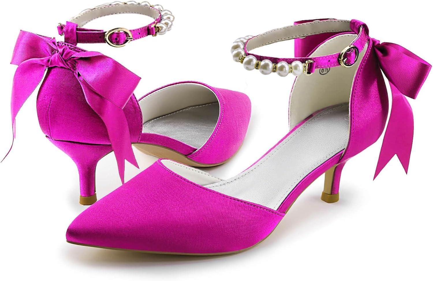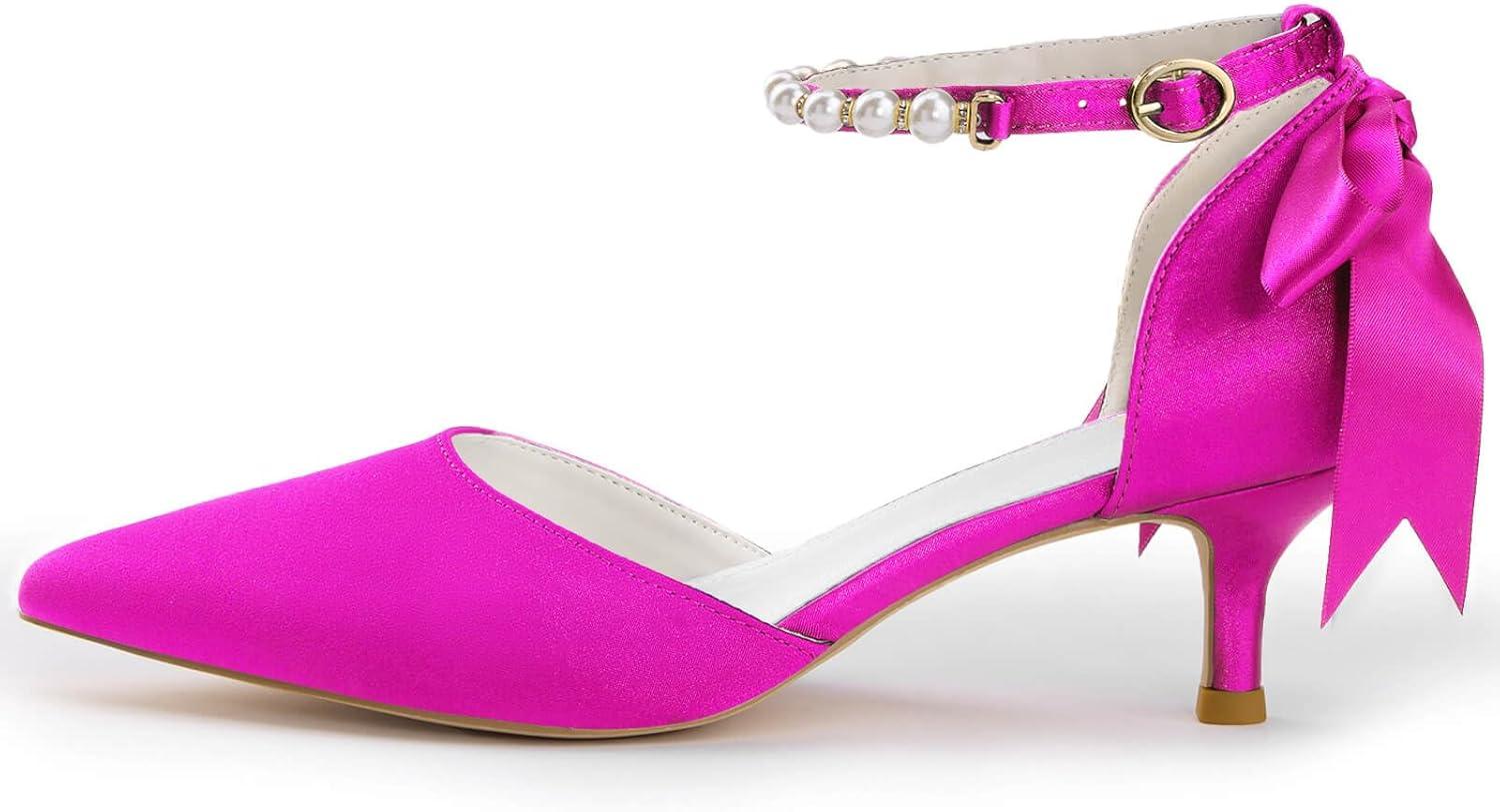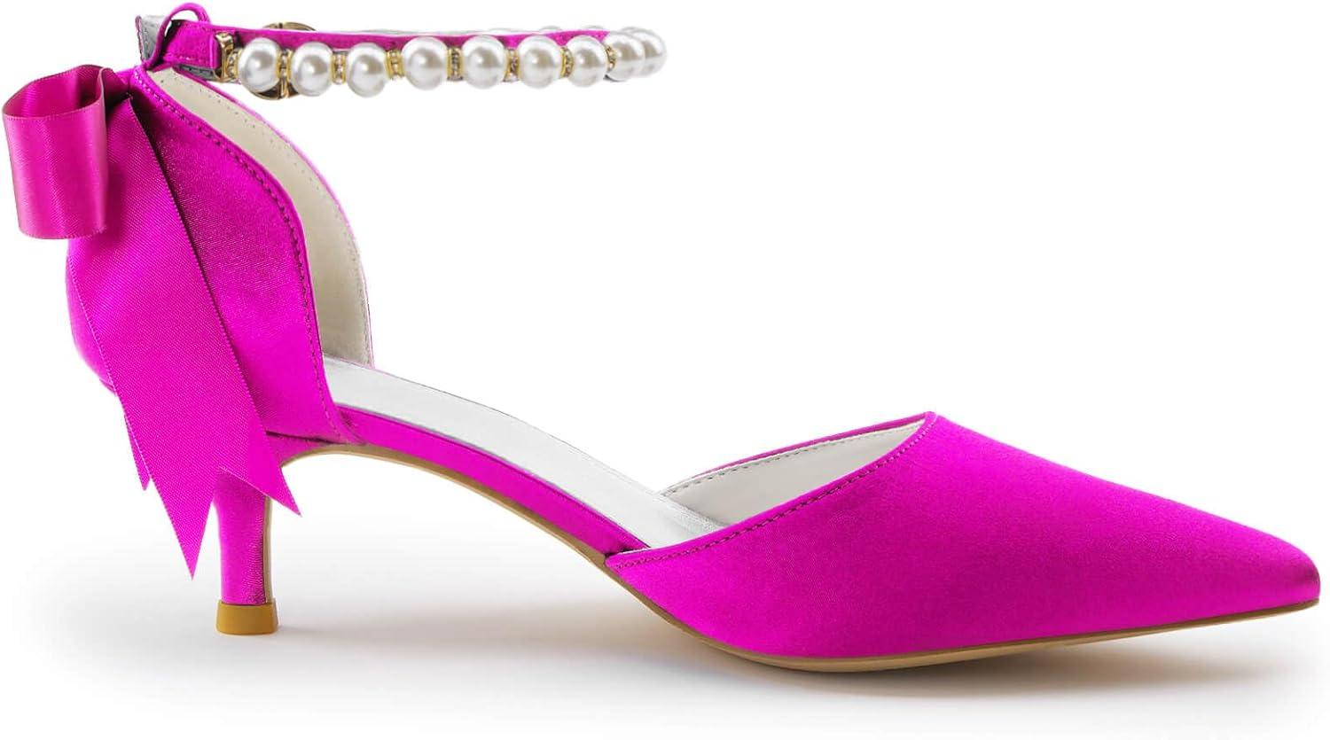 Get the Coutgo Womens Pearl Ankle Strap Pumps Low Kitten Heel D’Orsay Satin Back Tieknot Heels Pointed Toe Wedding Party Dress Shoes(Rose Red) you want at a price you can afford with our markdown sale.