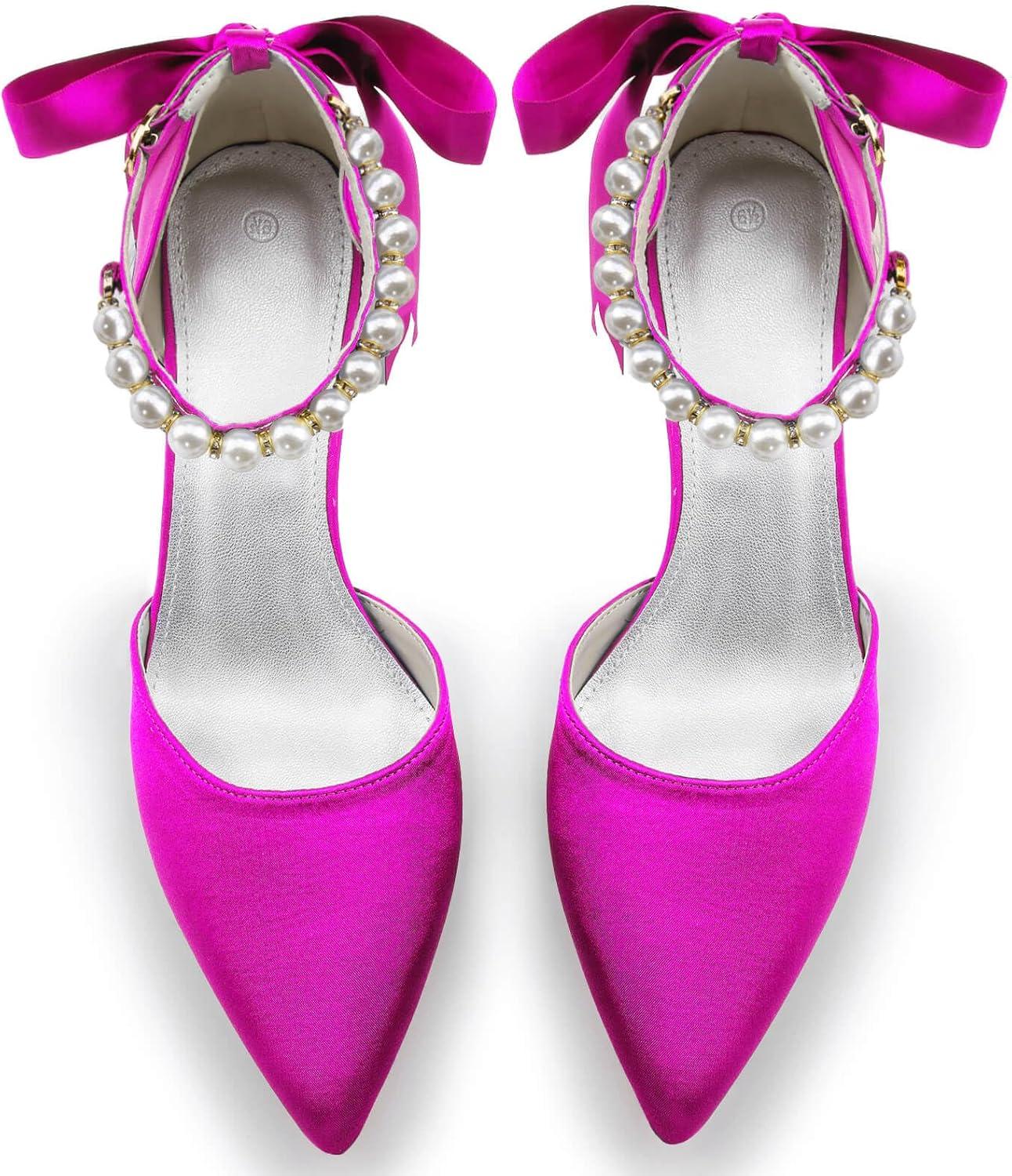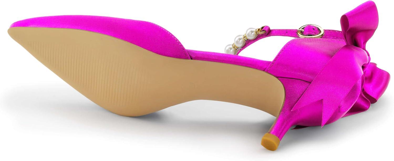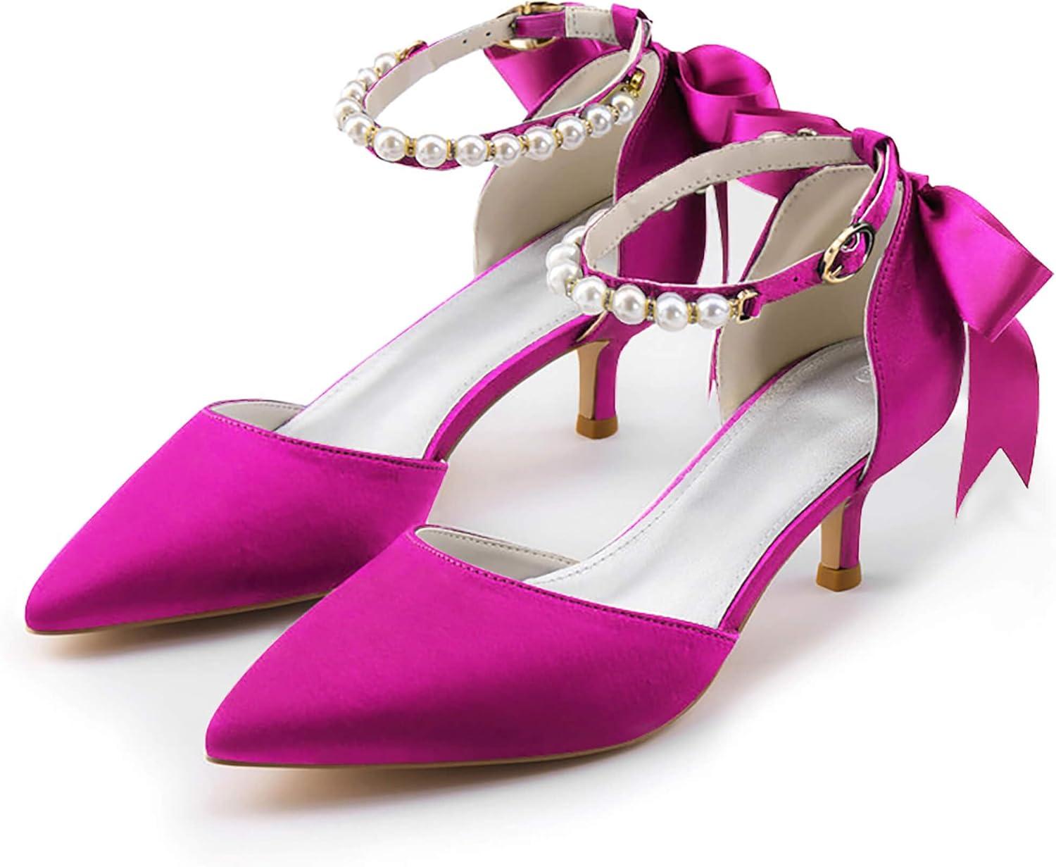 Get the Coutgo Womens Pearl Ankle Strap Pumps Low Kitten Heel D’Orsay Satin Back Tieknot Heels Pointed Toe Wedding Party Dress Shoes(Rose Red) you want at a price you can afford with our markdown sale.