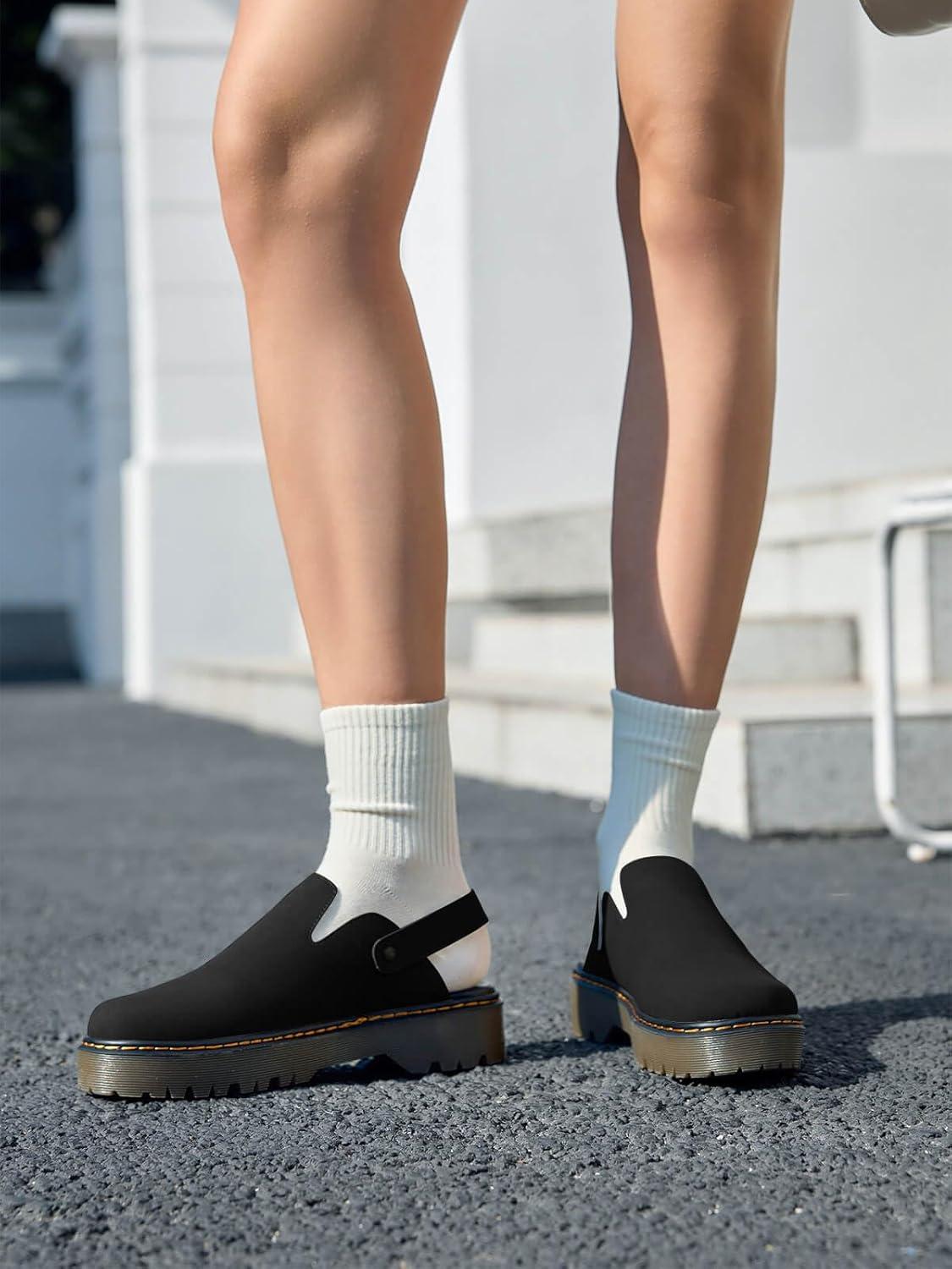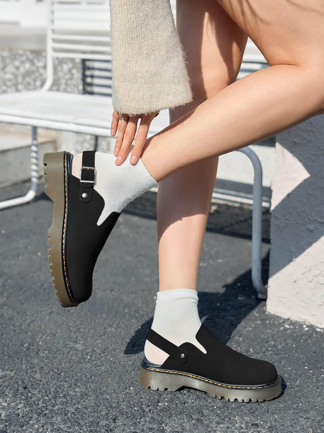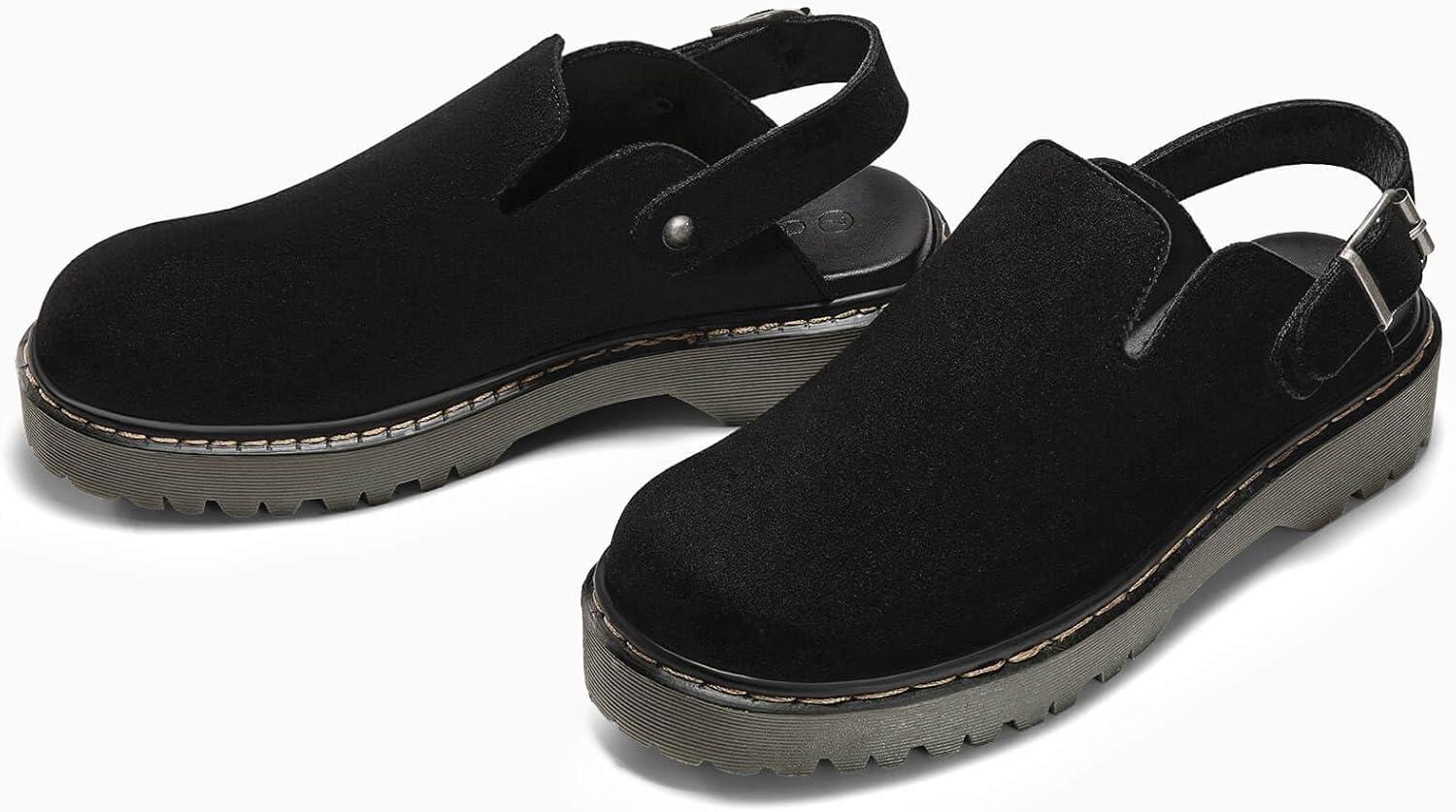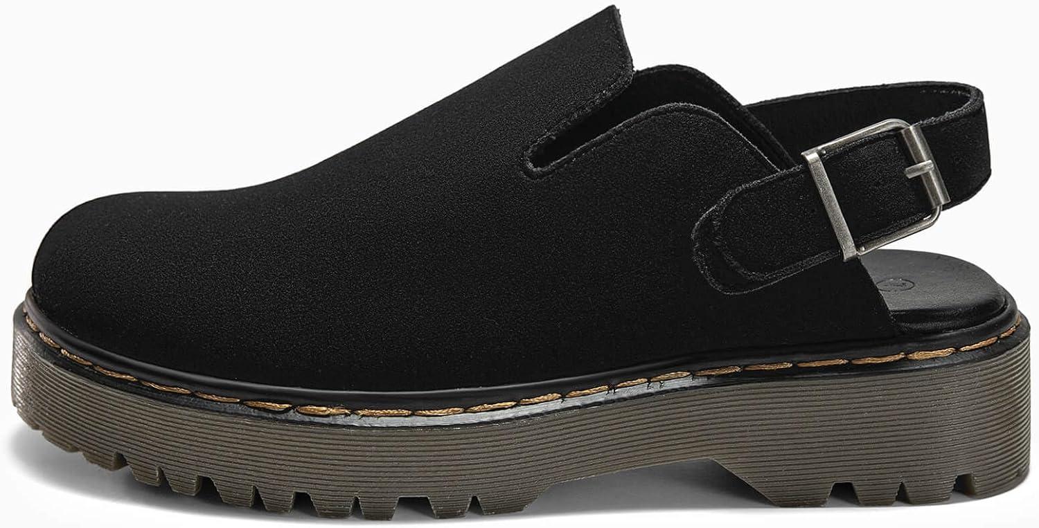Coutgo Women’s Platform Clogs Adjustable Strap Slingback Mules Suede Leather Closed Toe Slip on Shoes(Black)