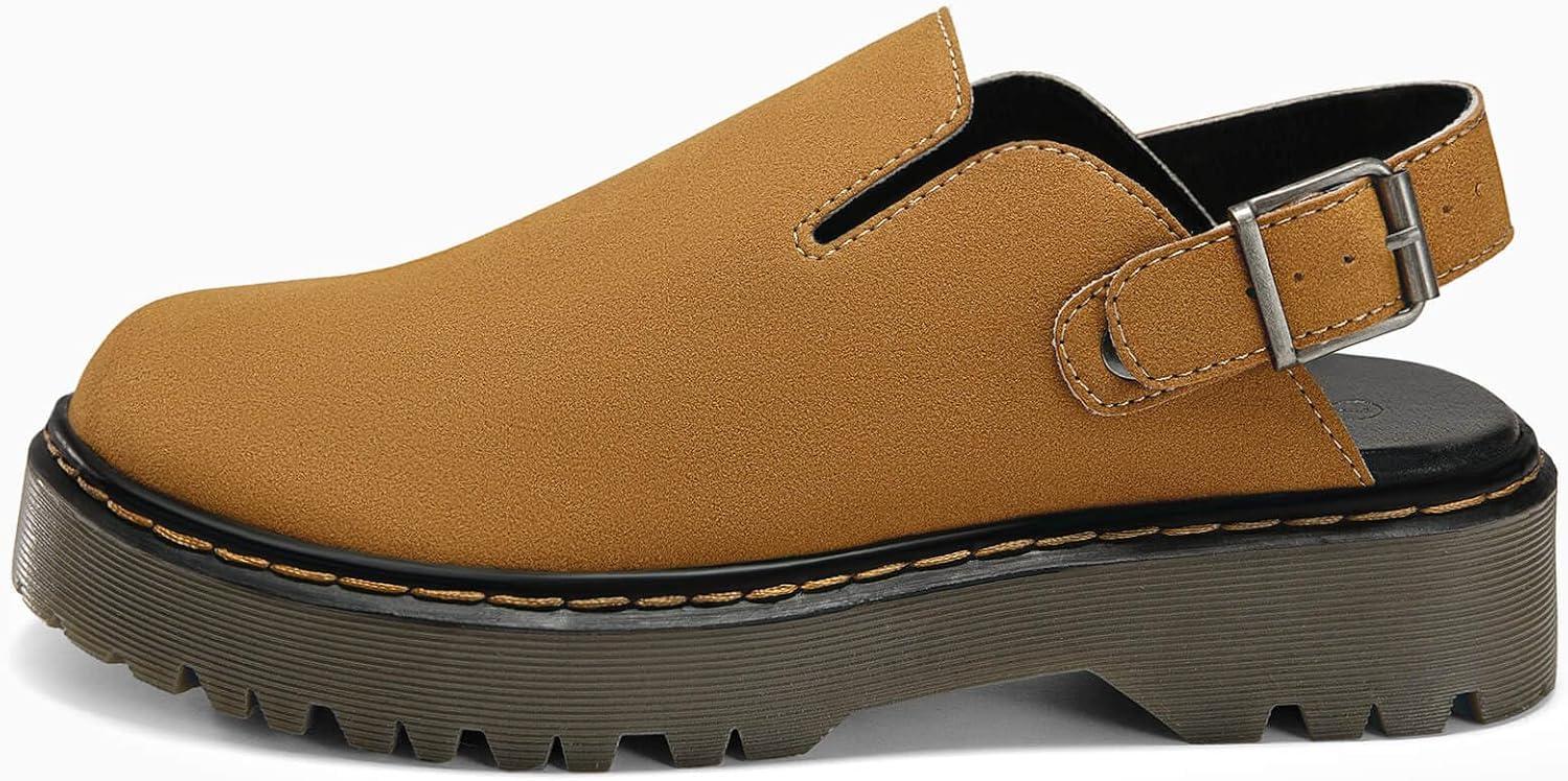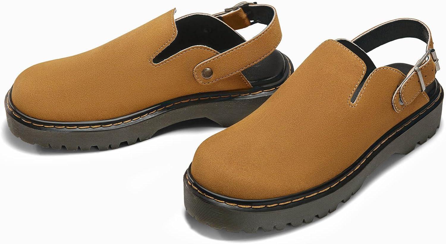 Coutgo Women’s Platform Clogs Adjustable Strap Slingback Mules Suede Leather Closed Toe Slip on Shoes(Brown)
