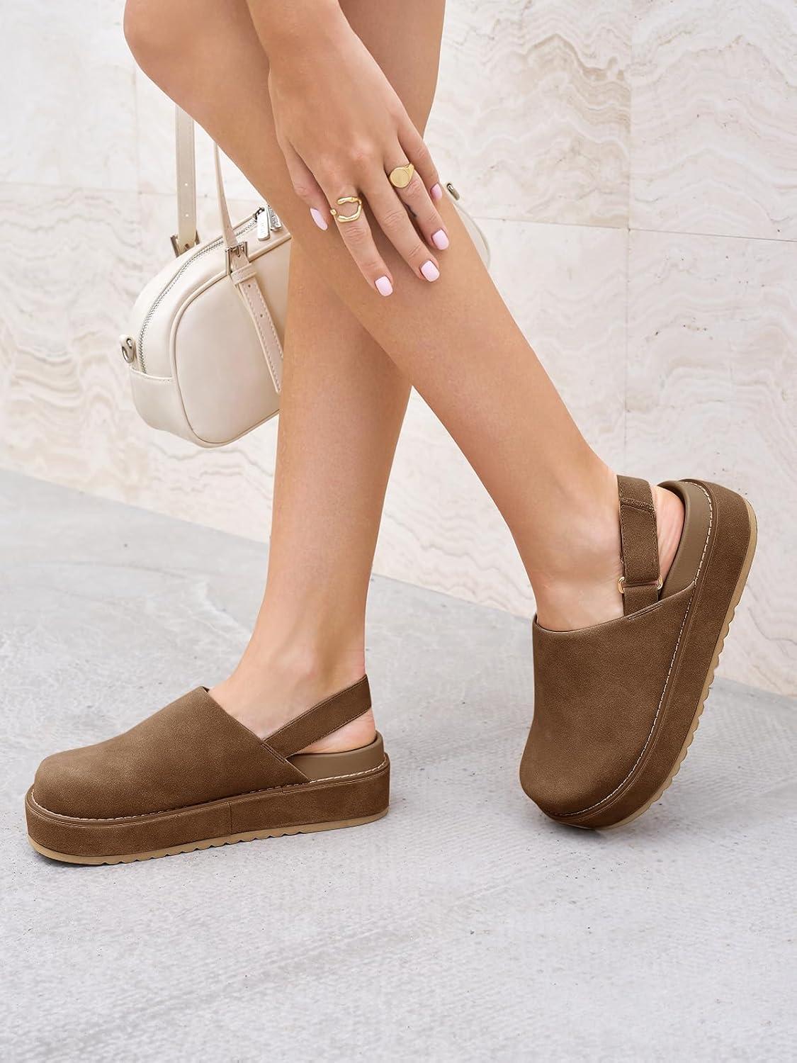 Get up to 50% off on Coutgo Women’s Platform Clogs Adjustable Strap Slip on Mules Shoes Comfortable Fall Sandals(Dark Brown) styles during our spring sale event.