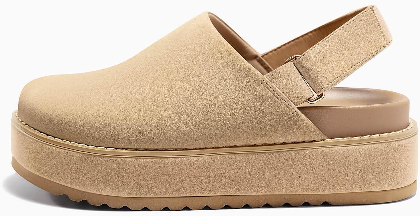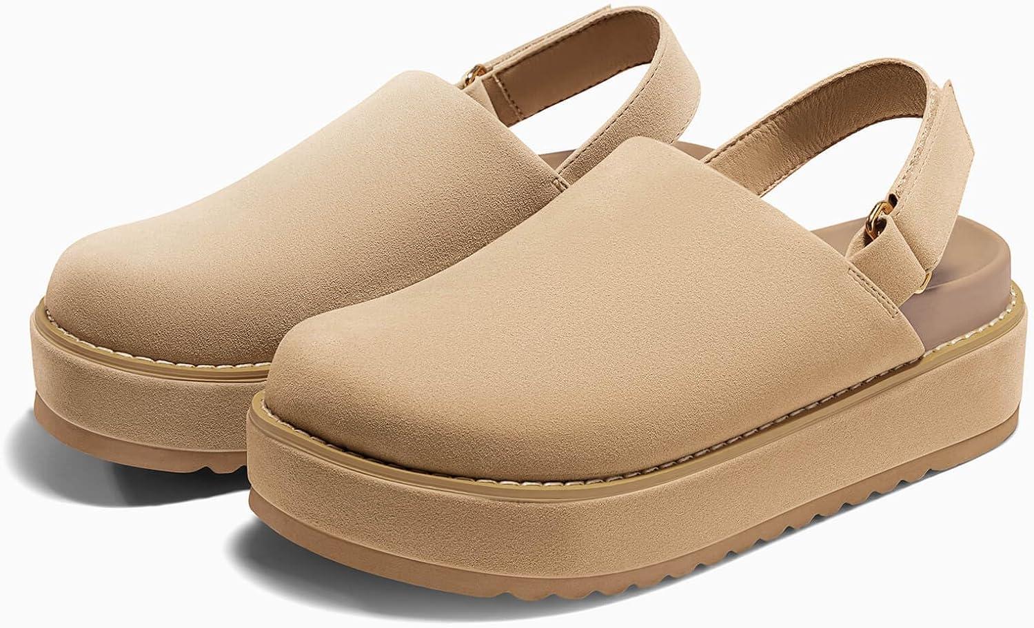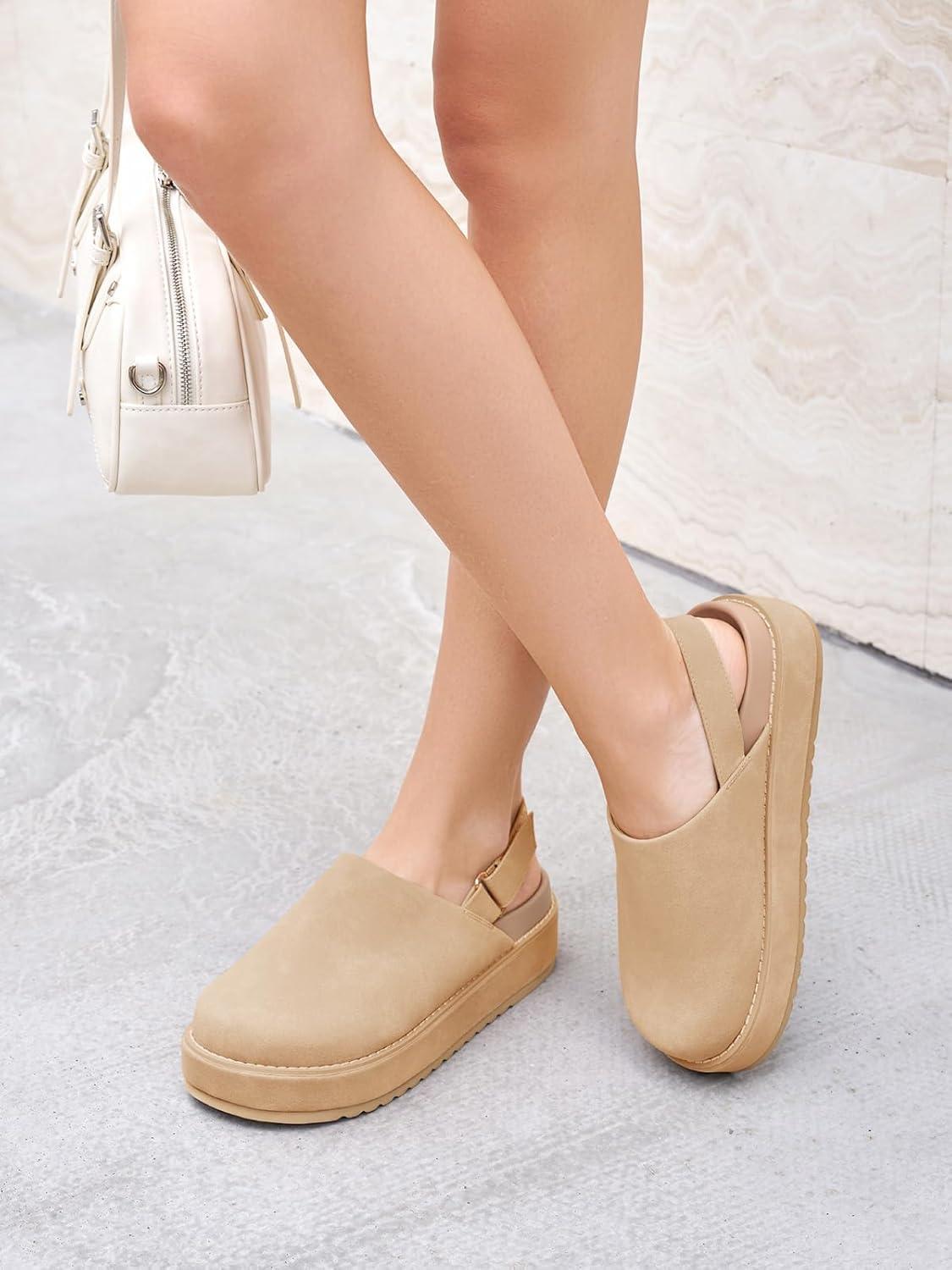 Coutgo Women’s Platform Clogs Adjustable Strap Slip on Mules Shoes Comfortable Fall Sandals(Khaki)