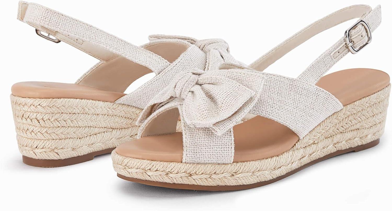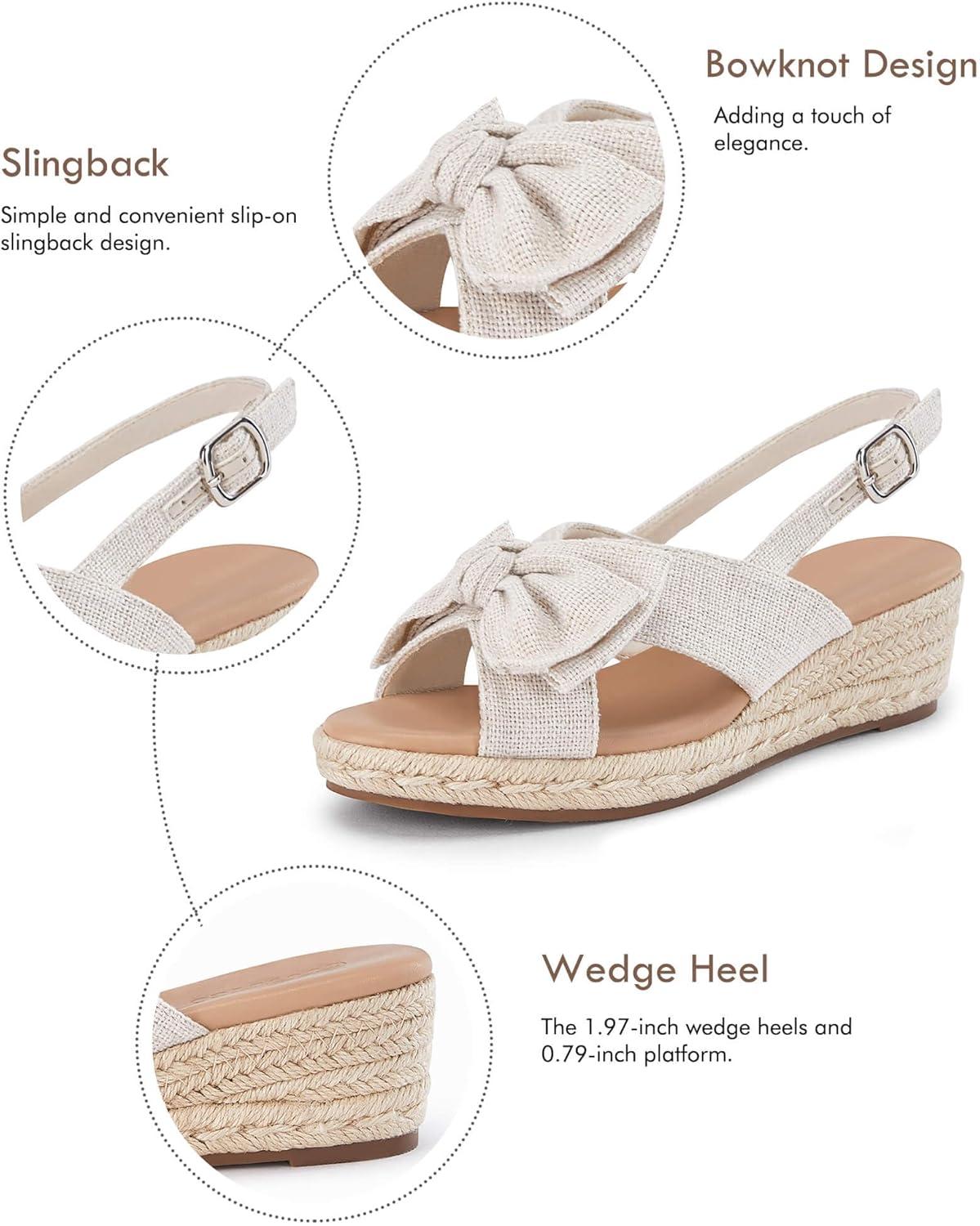 Coutgo Women’s Platform Espadrille Wedge Sandals Slingback Bowknot Open Toe Casual Summer Dress Shoes(Beige)