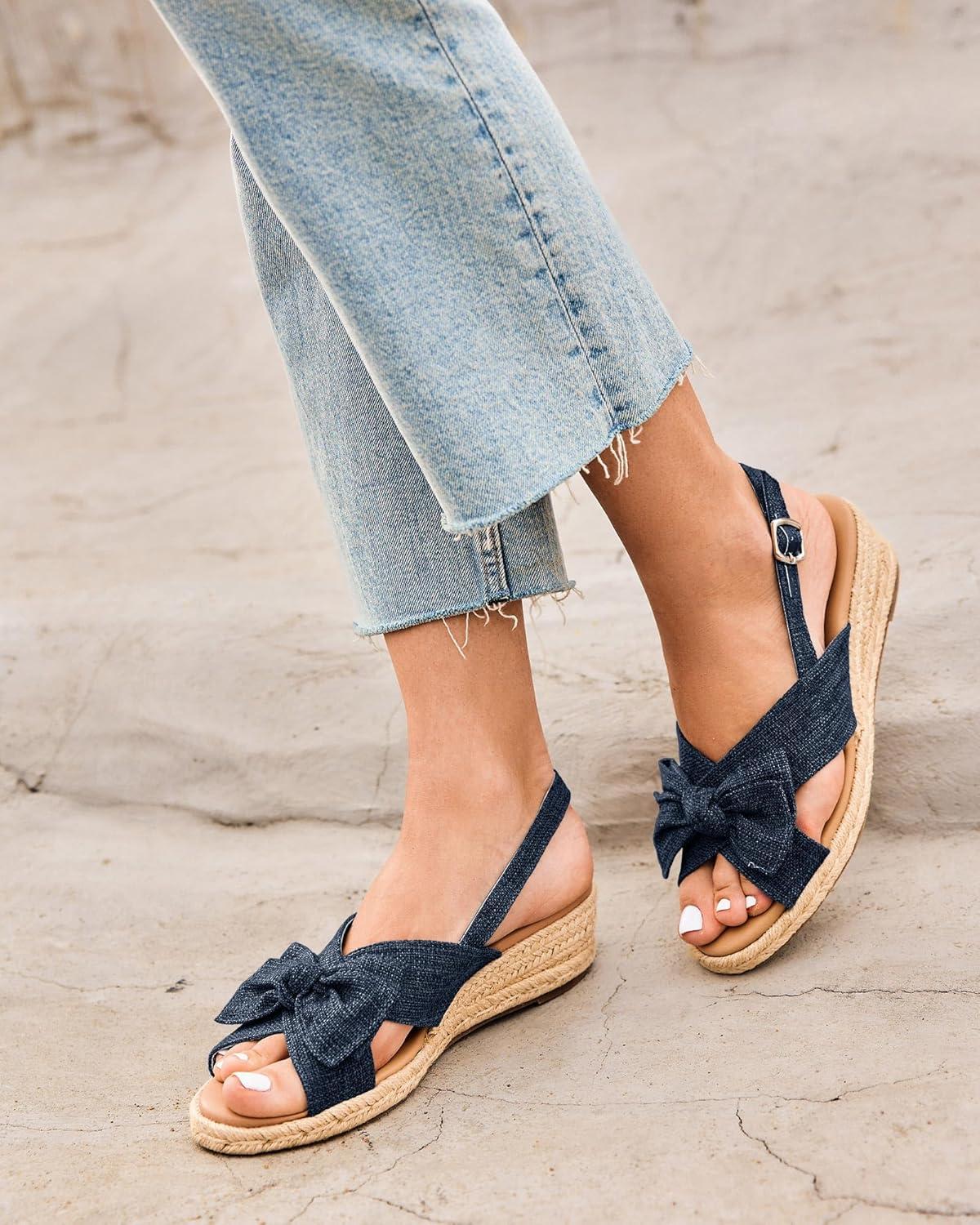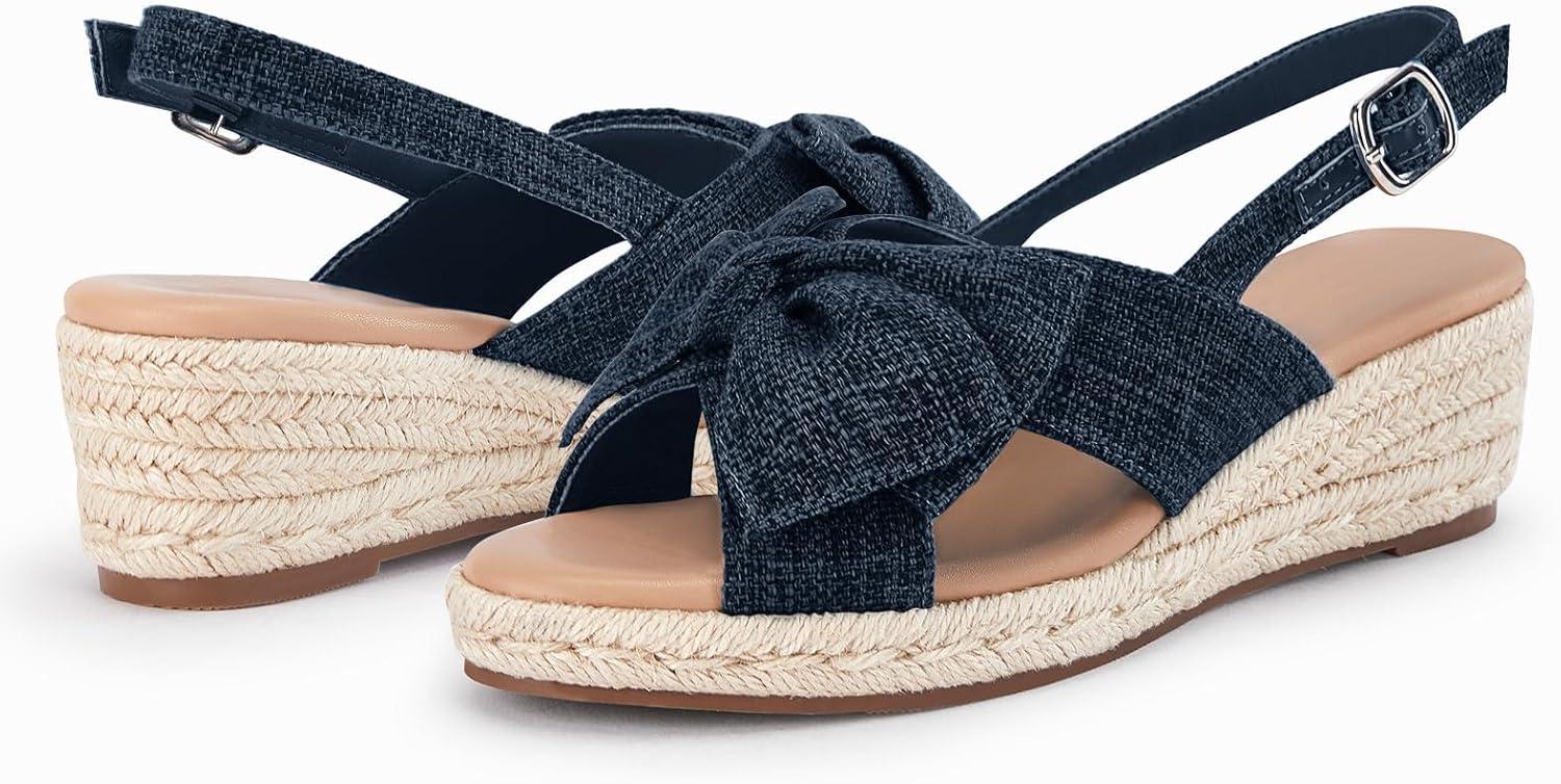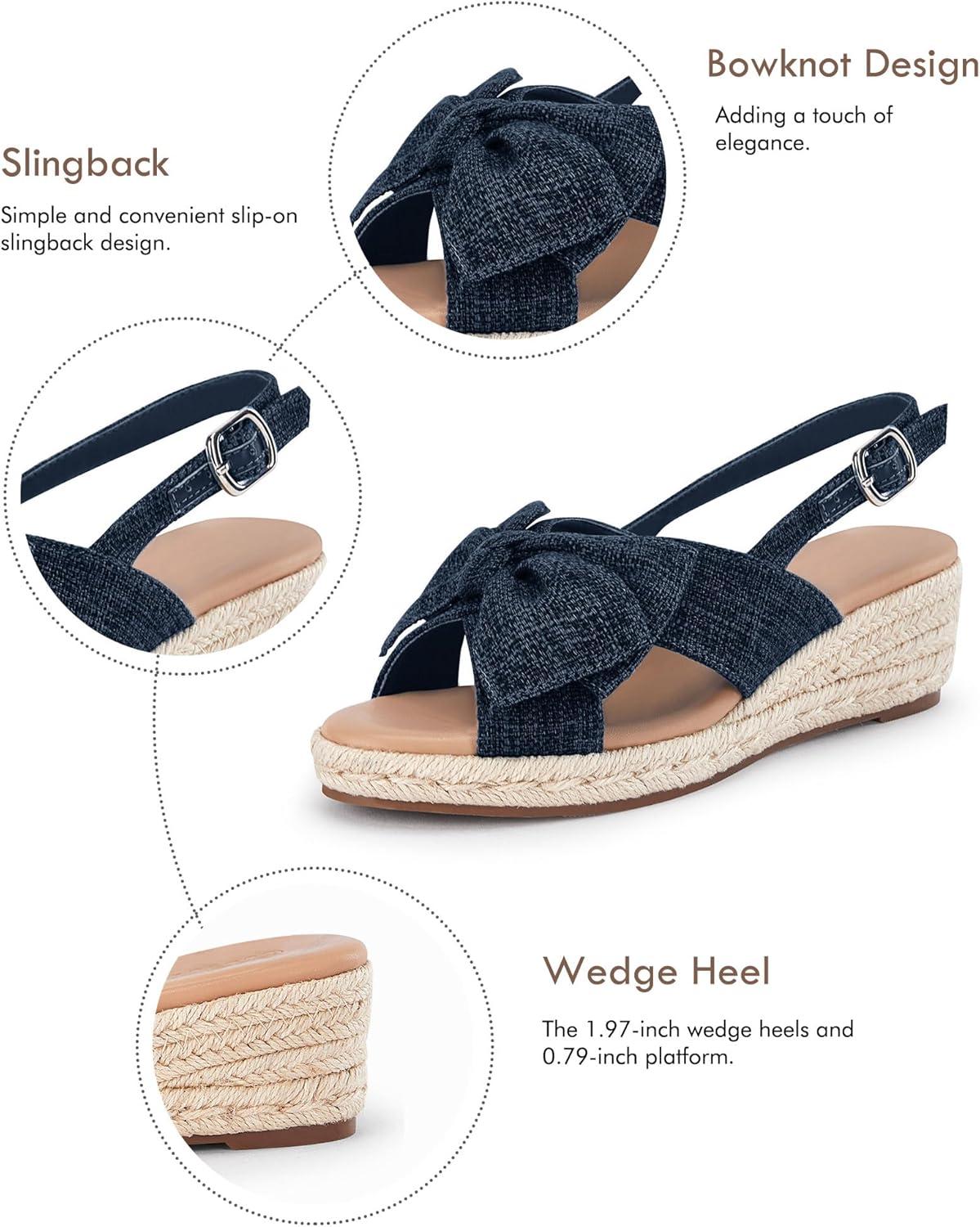 Coutgo Women’s Platform Espadrille Wedge Sandals Slingback Bowknot Open Toe Casual Summer Dress Shoes(Navy Blue)