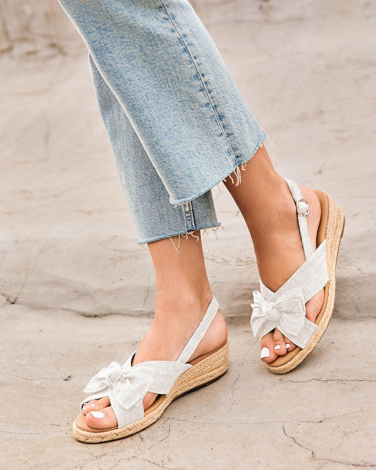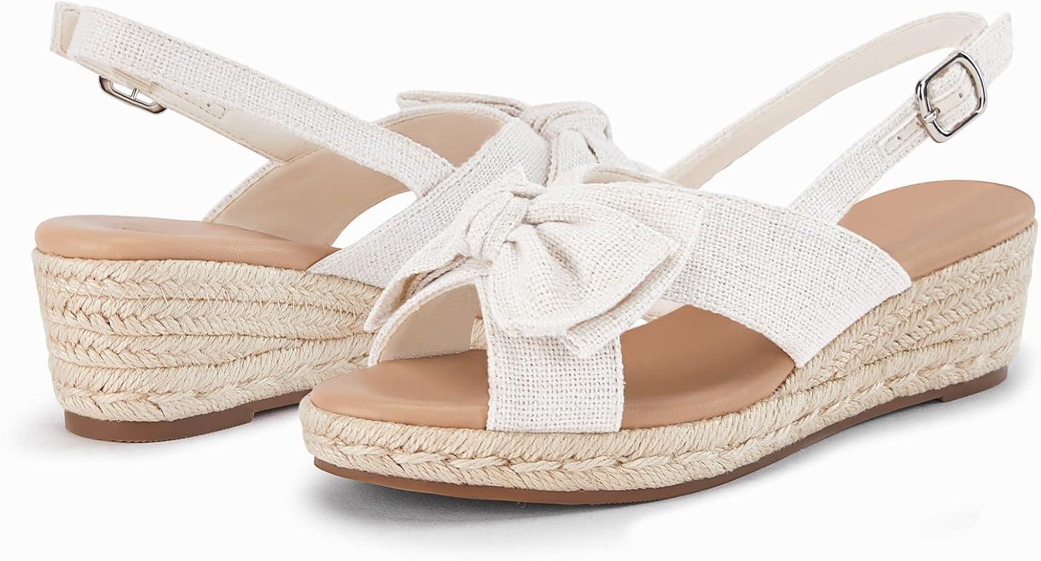 Coutgo Women’s Platform Espadrille Wedge Sandals Slingback Bowknot Open Toe Casual Summer Dress Shoes(White)