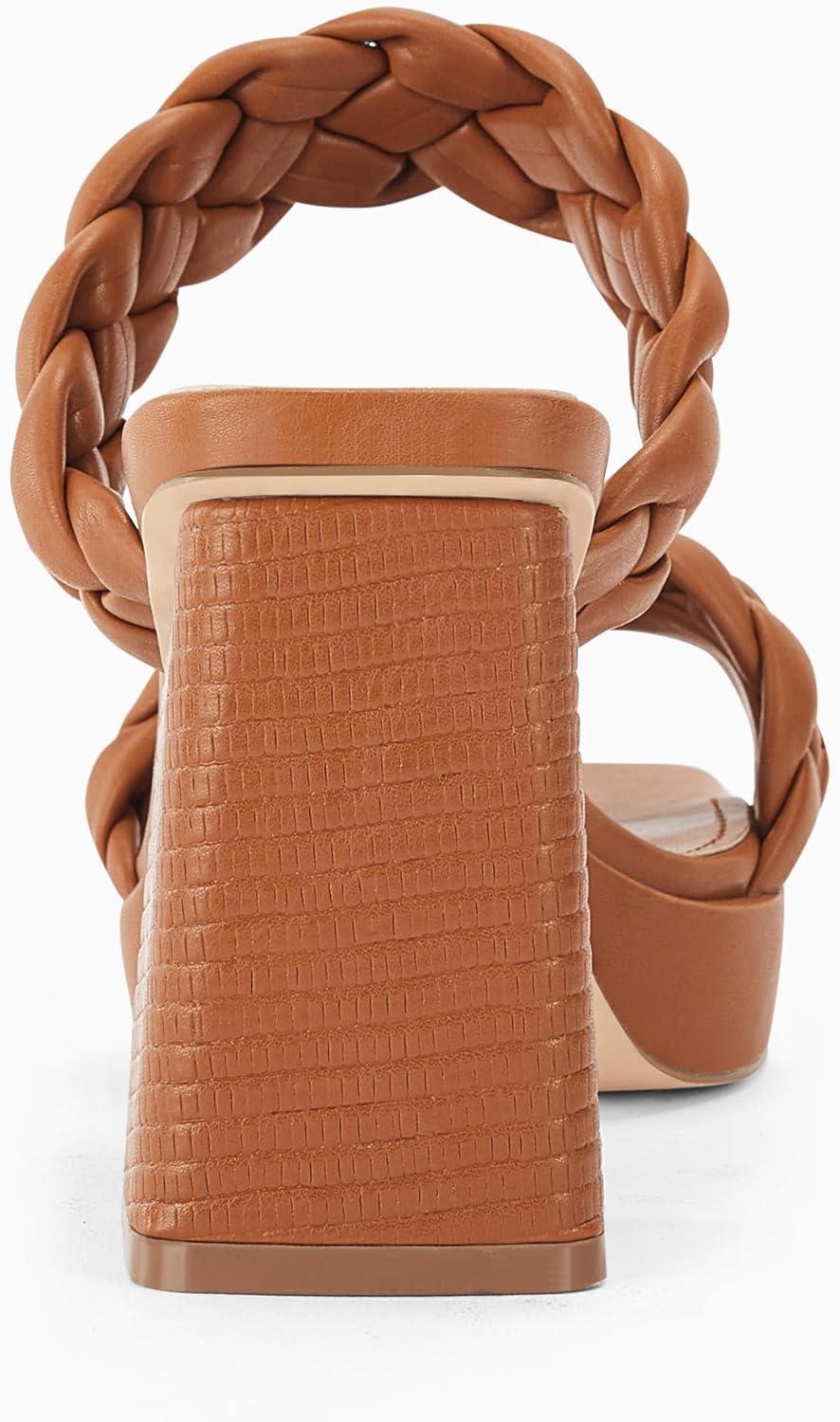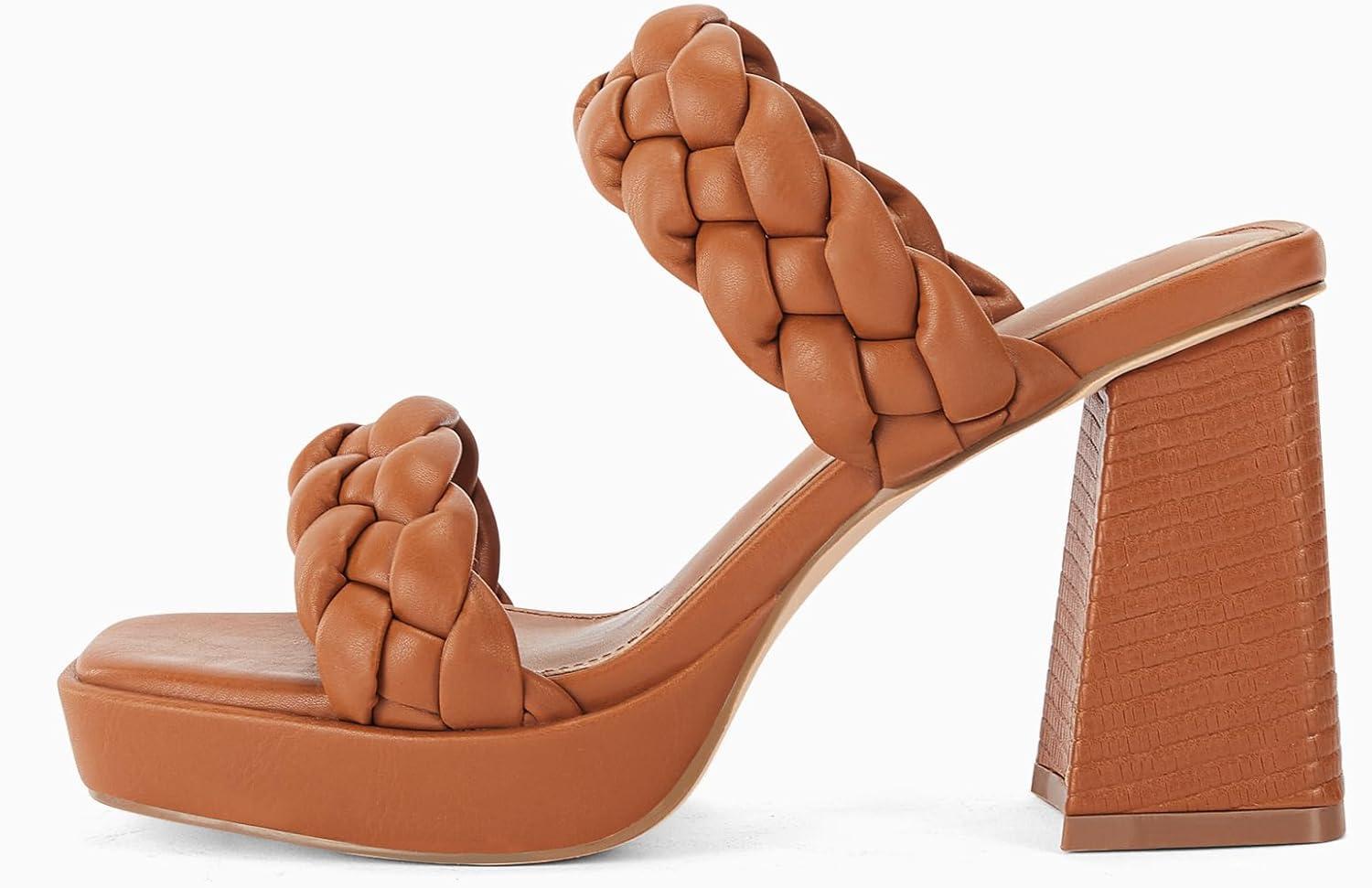 Coutgo Womens Platform Heels Chunky Heel Braided Heeled Sandals Slip on High Mules Party Summer Dress Shoes(Brown)