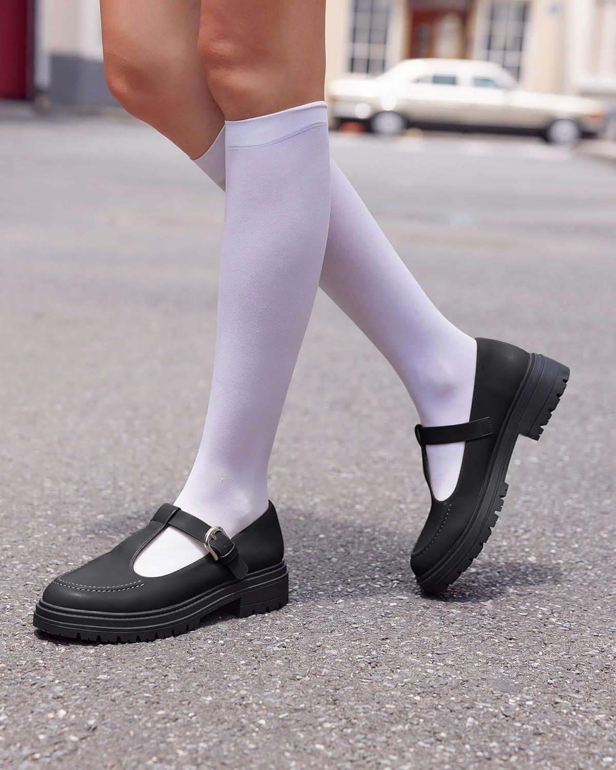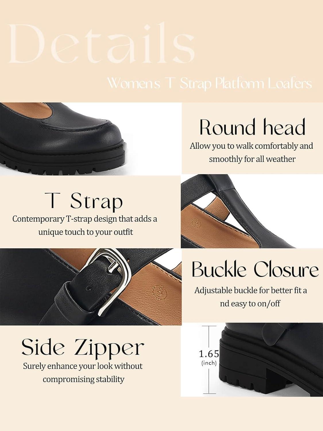 Coutgo Women’s Platform Loafers T Strap Chunky Low Heel Buckle Strap Mary Jane Comfortable Casual Office Shoes(Black)