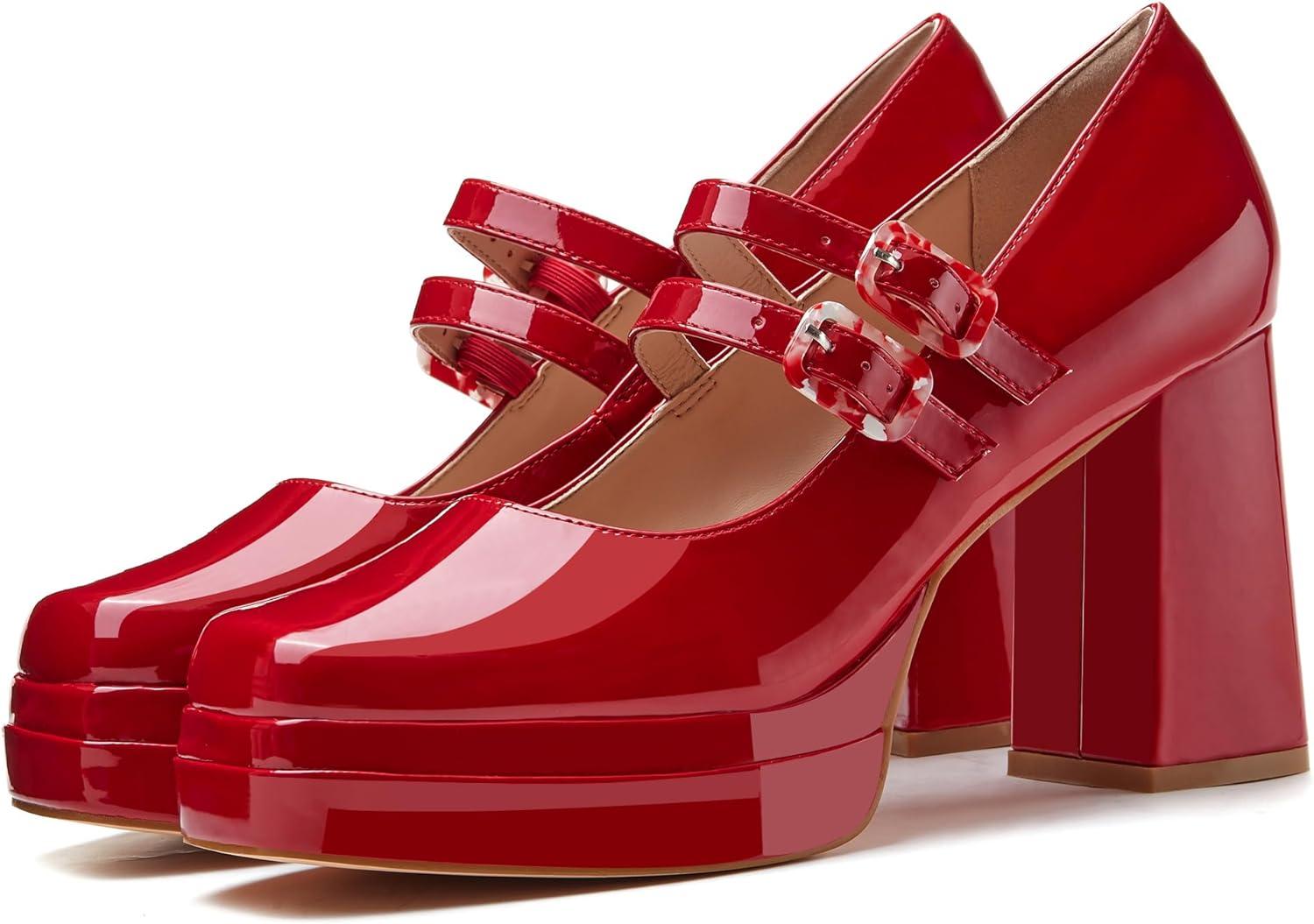 Get up to 50% off on Coutgo Women’s Platform Mary Jane Pumps Two Strap Square Toe Chunky Block Heel Sandals Party Shoes(Red) styles during our spring sale event.