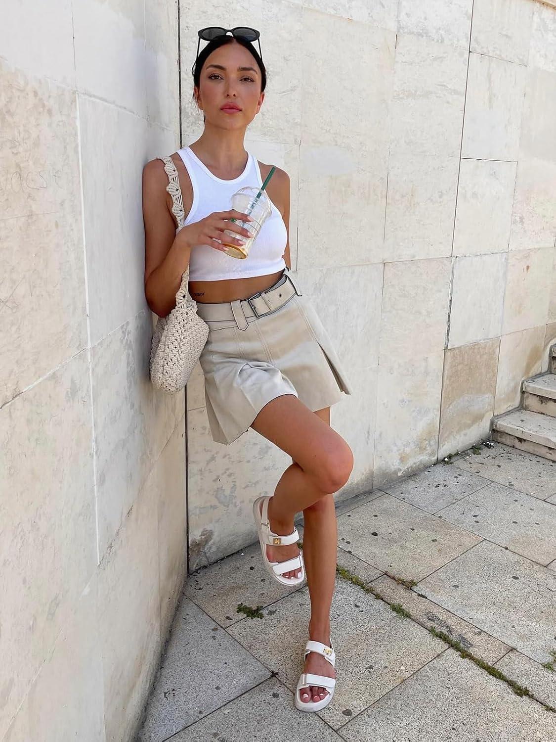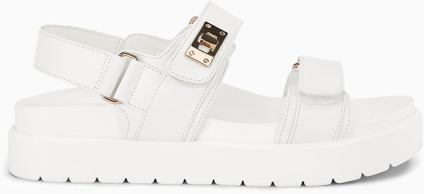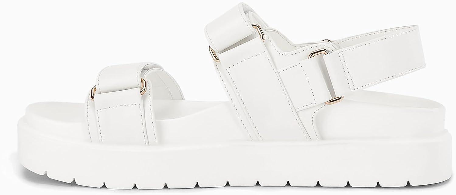Coutgo Womens Platform Sandals Comfortable Flat Sandals Double Strap Footbed Summer Beach Sandals(White)