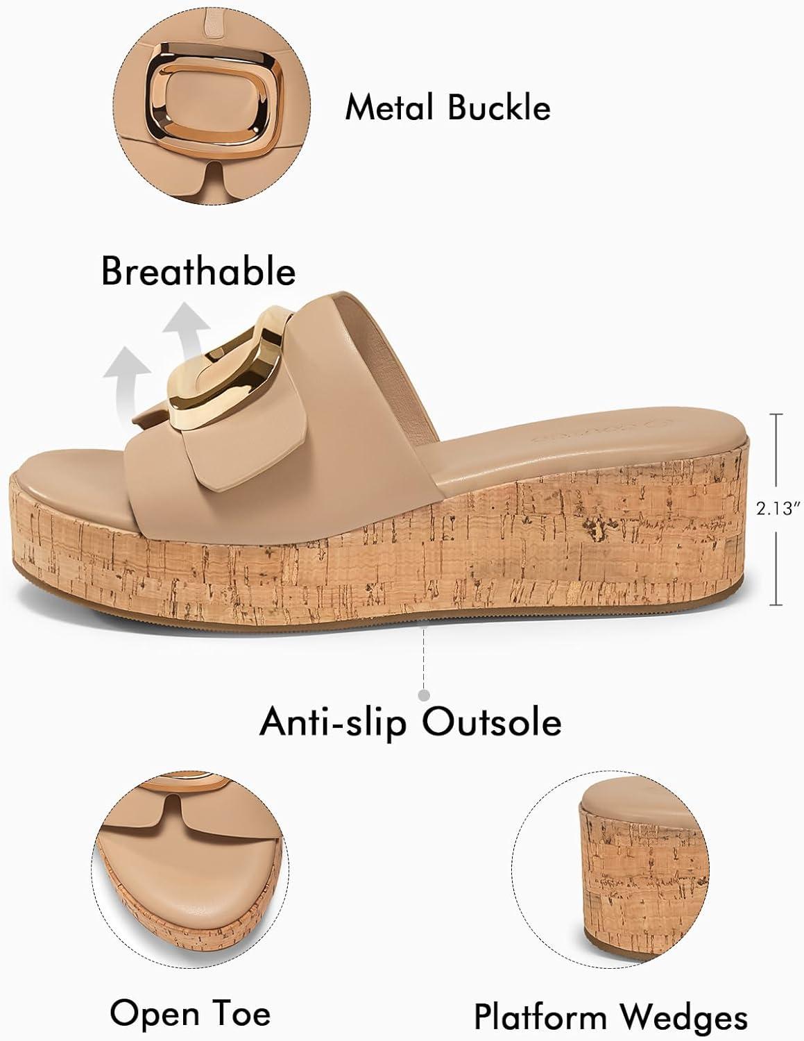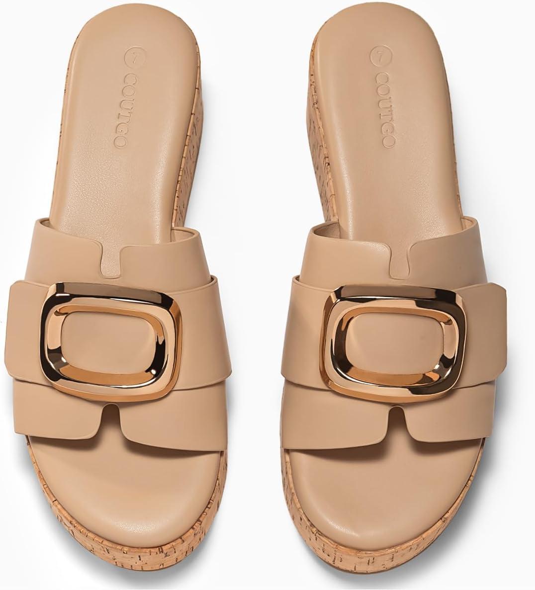 Don’t miss out on our limited-time offer: buy Coutgo Womens Platform Sandals Cork Beach Slip on Wedges Metal Buckle Slides Open Toe Summer Shoes(Khaki), get {accessory} 50% off!