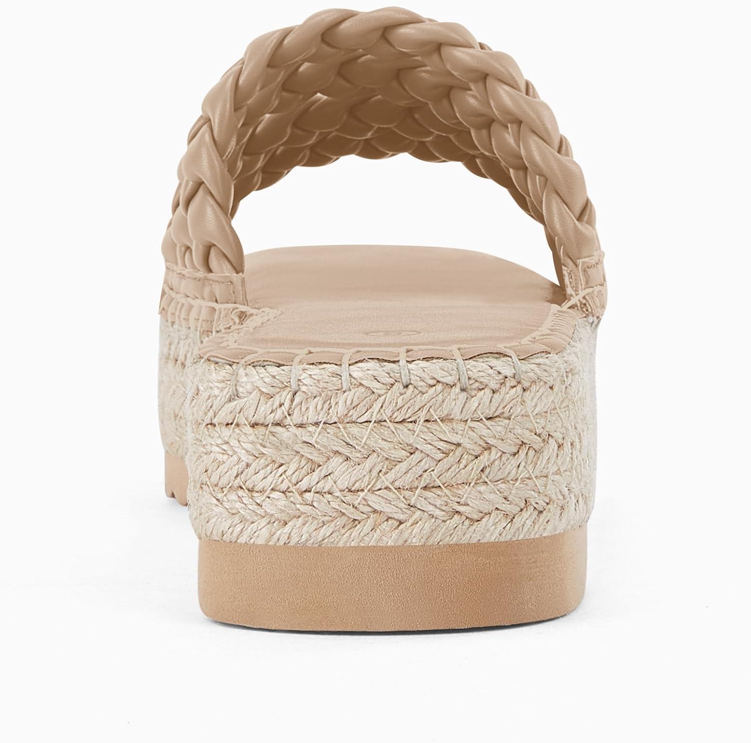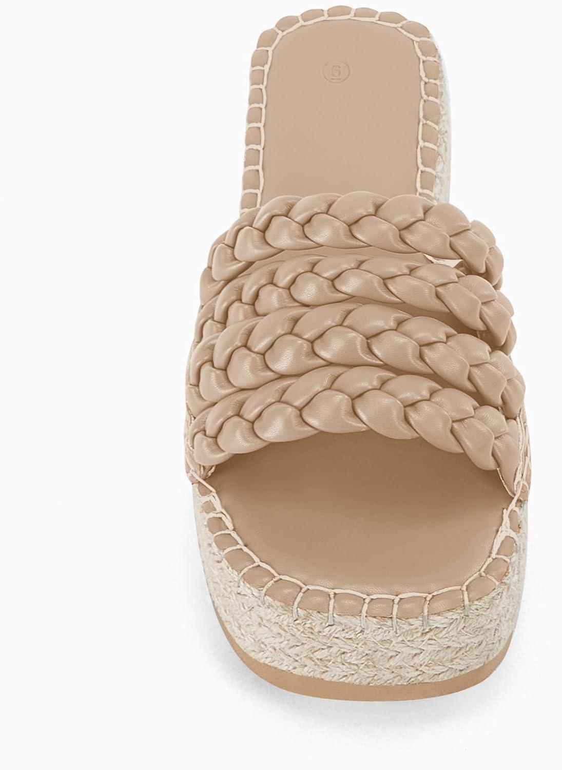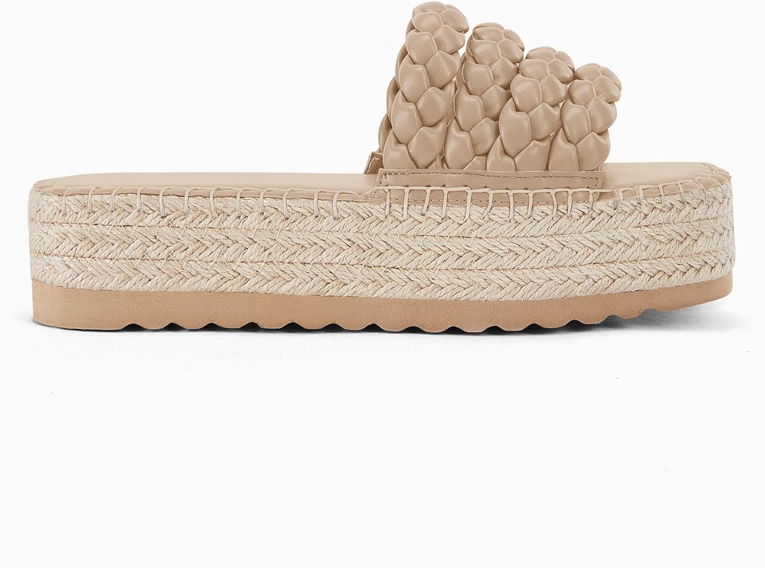 Coutgo Womens Platform Slides Sandals Espadrilles Braided Slip on Open Toe Backless Summer Dress Shoes(Light Khaki)