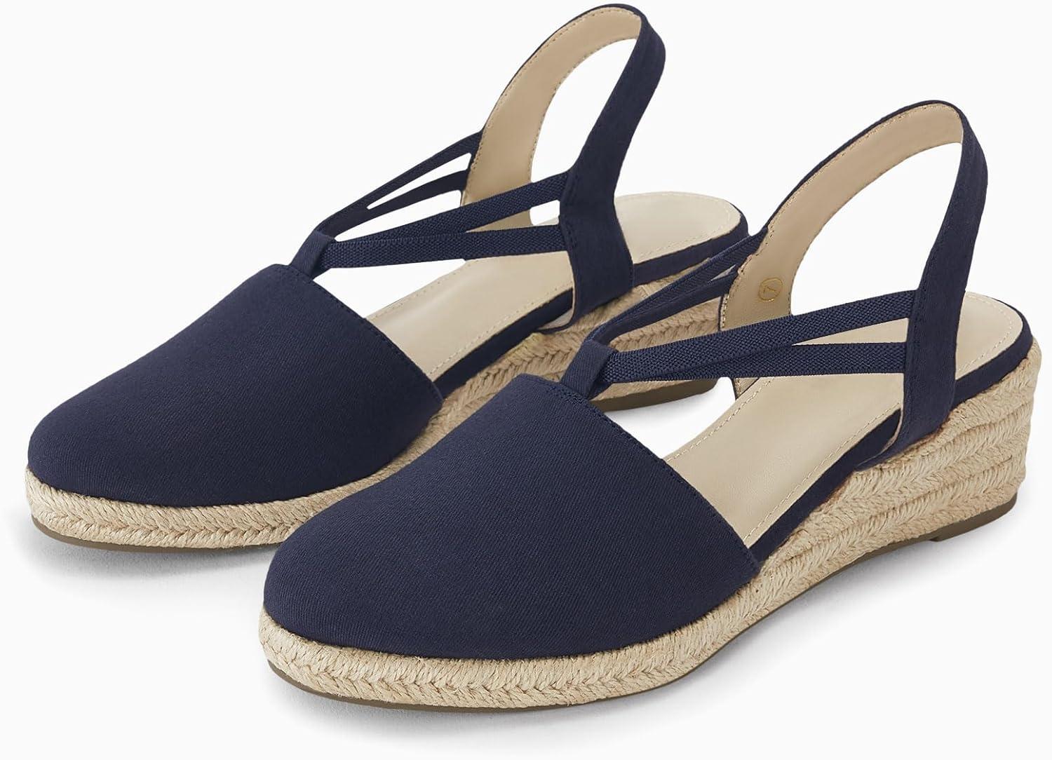 Coutgo Women’s Platform Wedge Espadrille Sandals Slingback Slip on Closed Toe Strap Shoes(Navy)