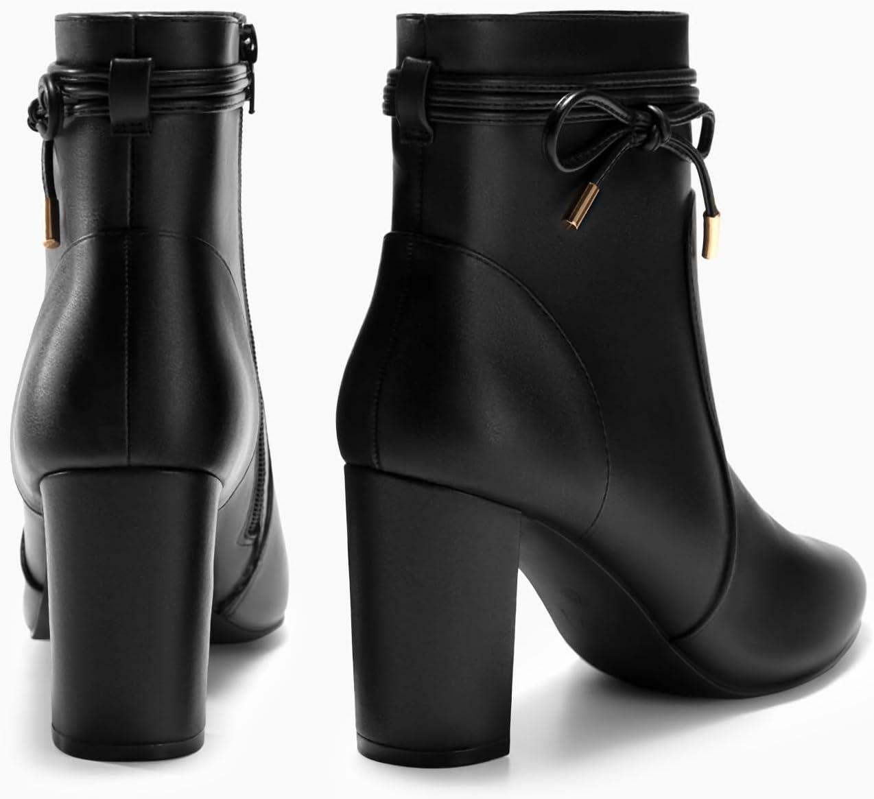 Be the first to review “Coutgo Womens Pointed Toe Ankle Boots Chunky Block Heel Tie Knot Side Zipper Dressy Booties(Cool Black)”