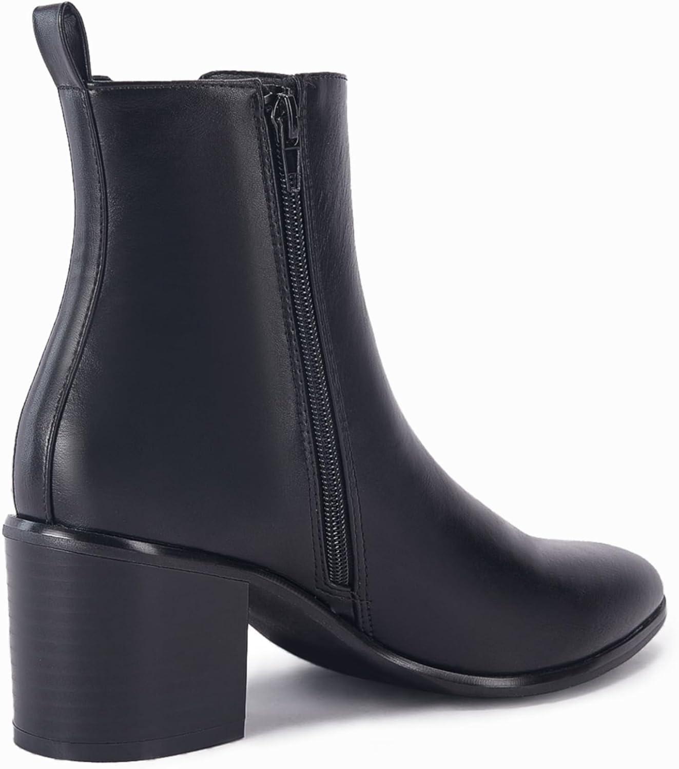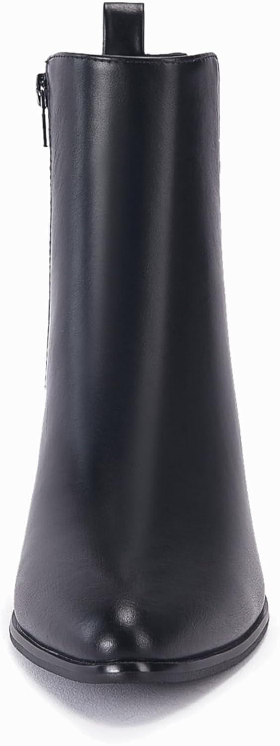 Coutgo Womens Pointed Toe Ankle Boots Chunky Block Stacked Heel Side Zipper Chelsea Fall Booties(Black(leather))