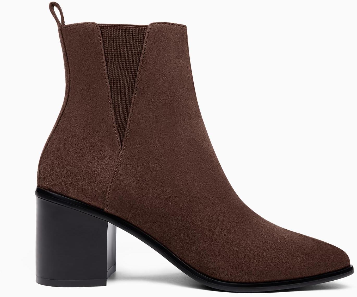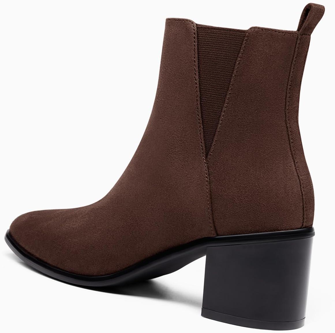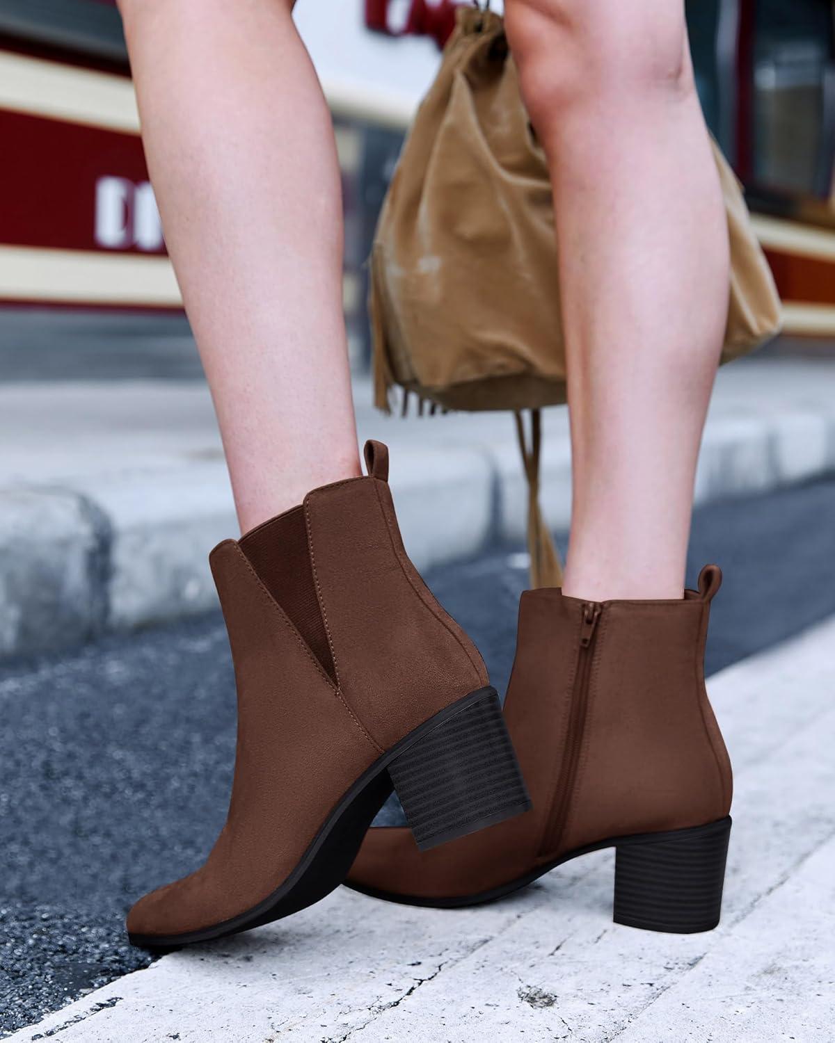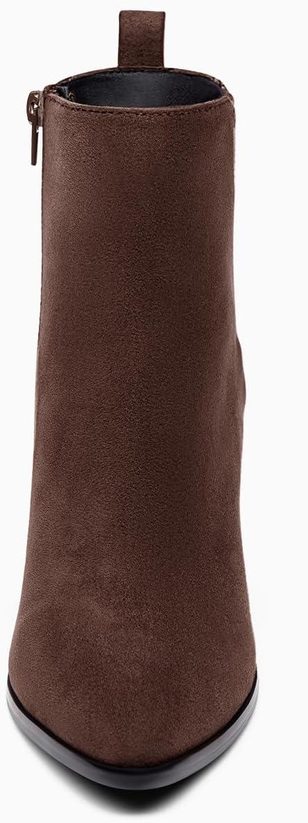 Coutgo Womens Pointed Toe Ankle Boots Chunky Block Stacked Heel Side Zipper Chelsea Fall Booties(Chocolate)