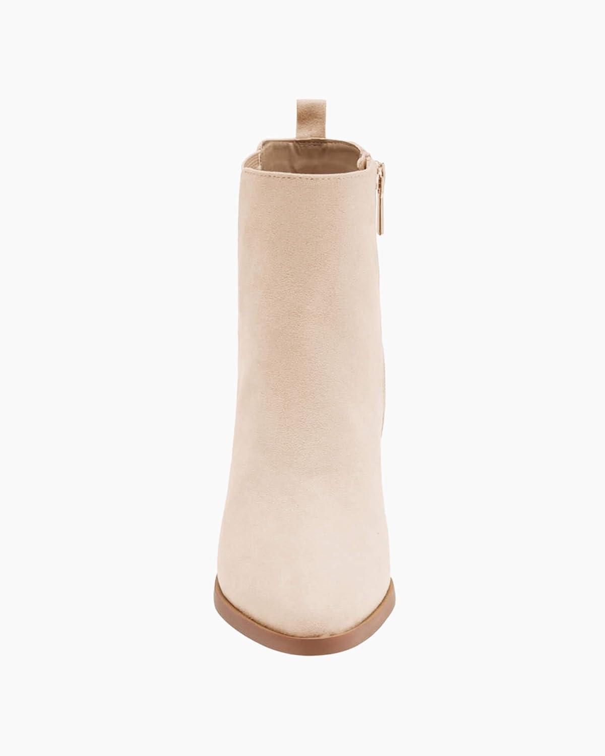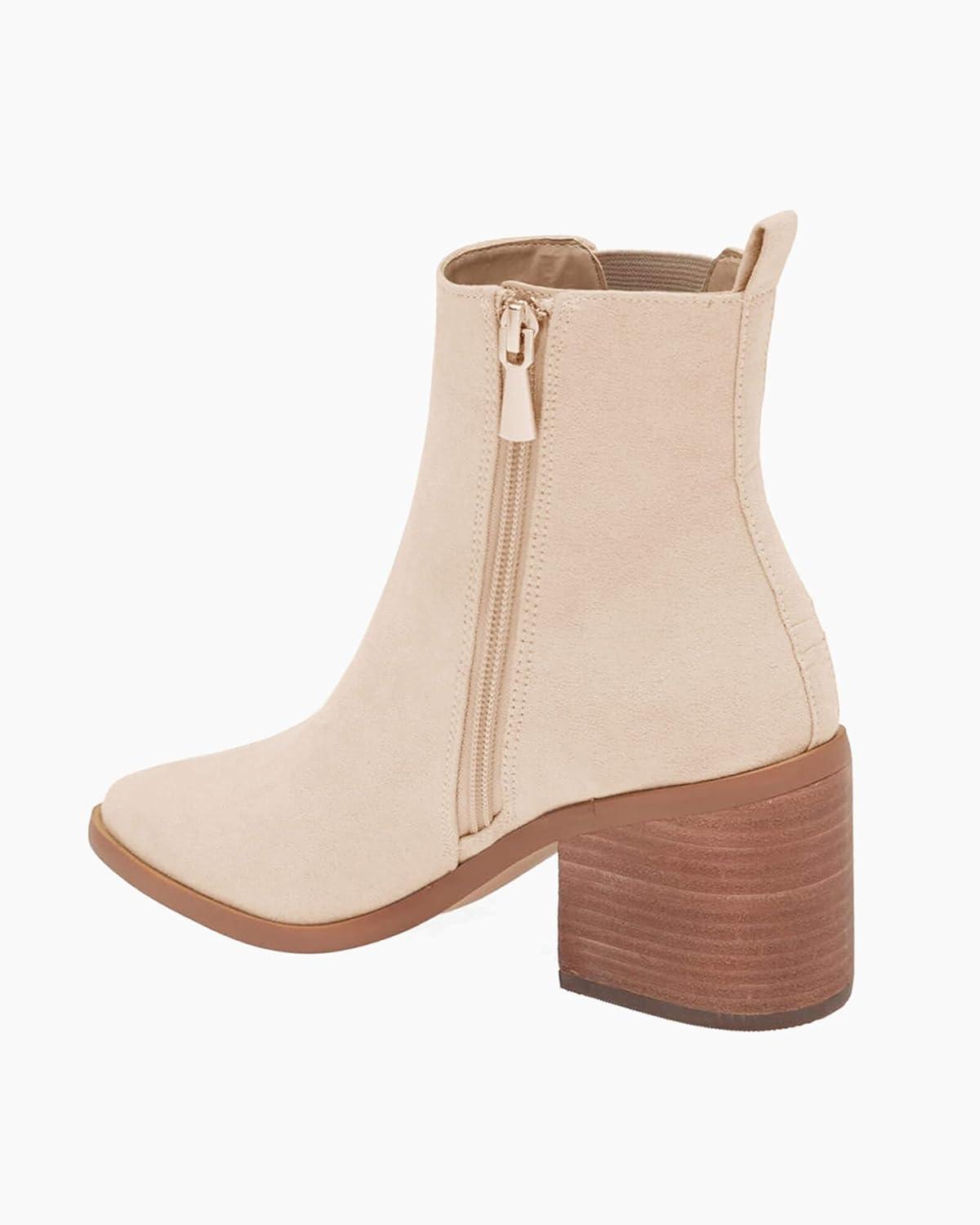 Coutgo Womens Pointed Toe Ankle Boots Chunky Block Stacked Heel Side Zipper Chelsea Fall Booties(Nude)