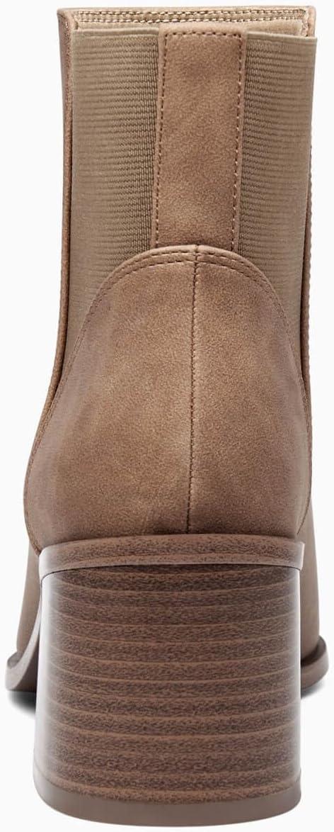 Coutgo Womens Pointed Toe Ankle Boots Elastic Chunky Block Stacked Mid Heel Slip On Chelsea Booties(Camel)