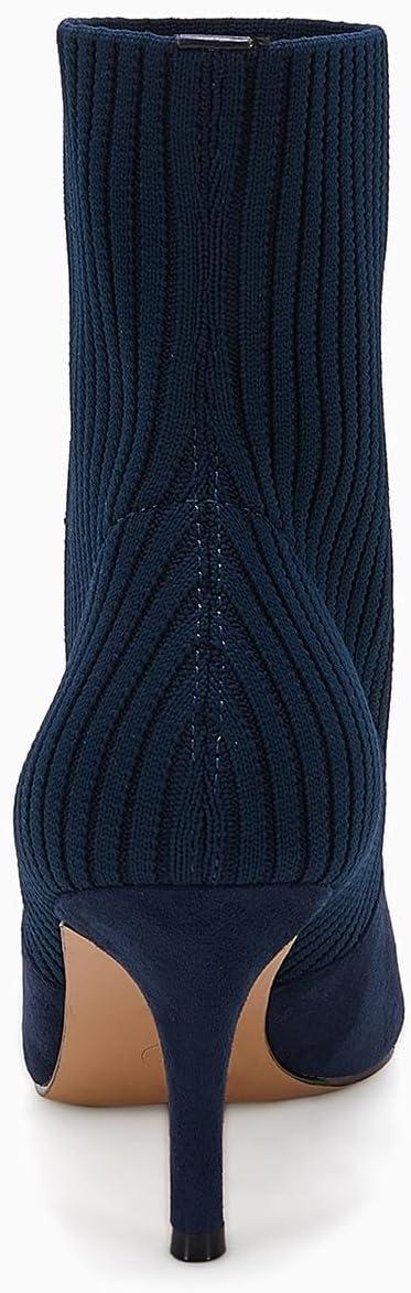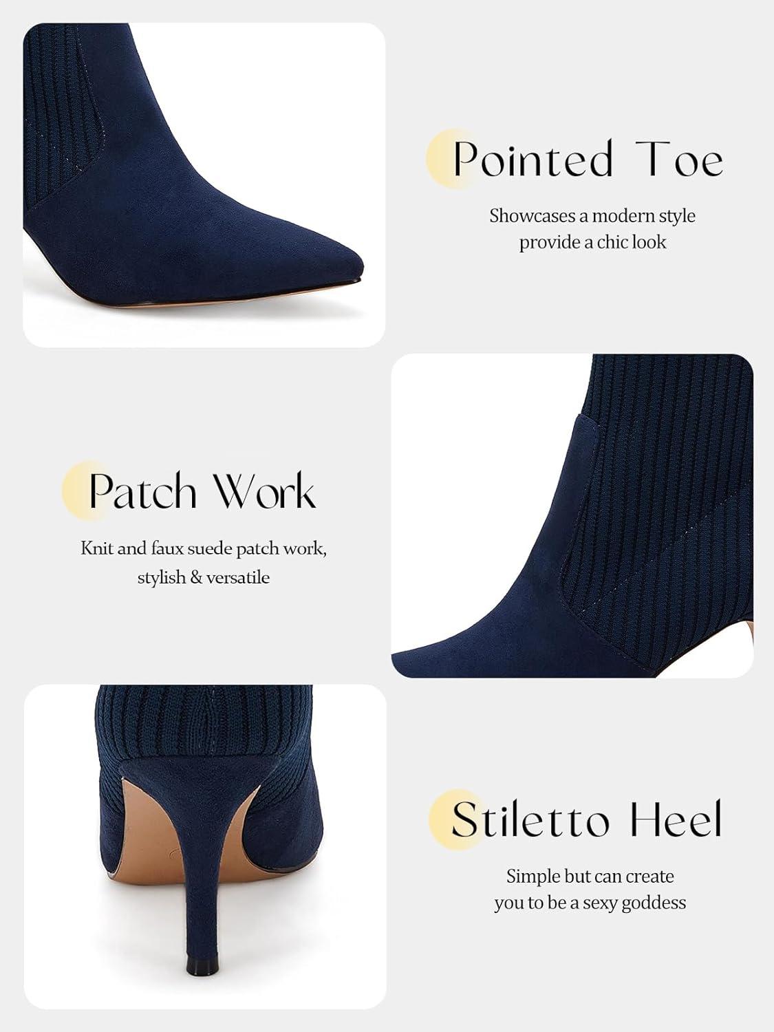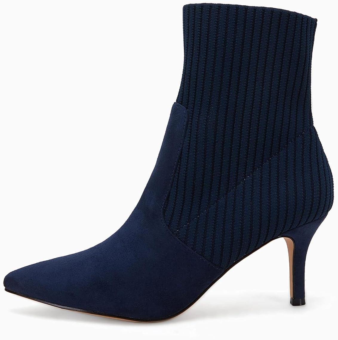Coutgo Women’s Pointed Toe Ankle Boots Stiletto Kitten Heel Knit Faux Suede Winter Sock Booties(Navy Suede)