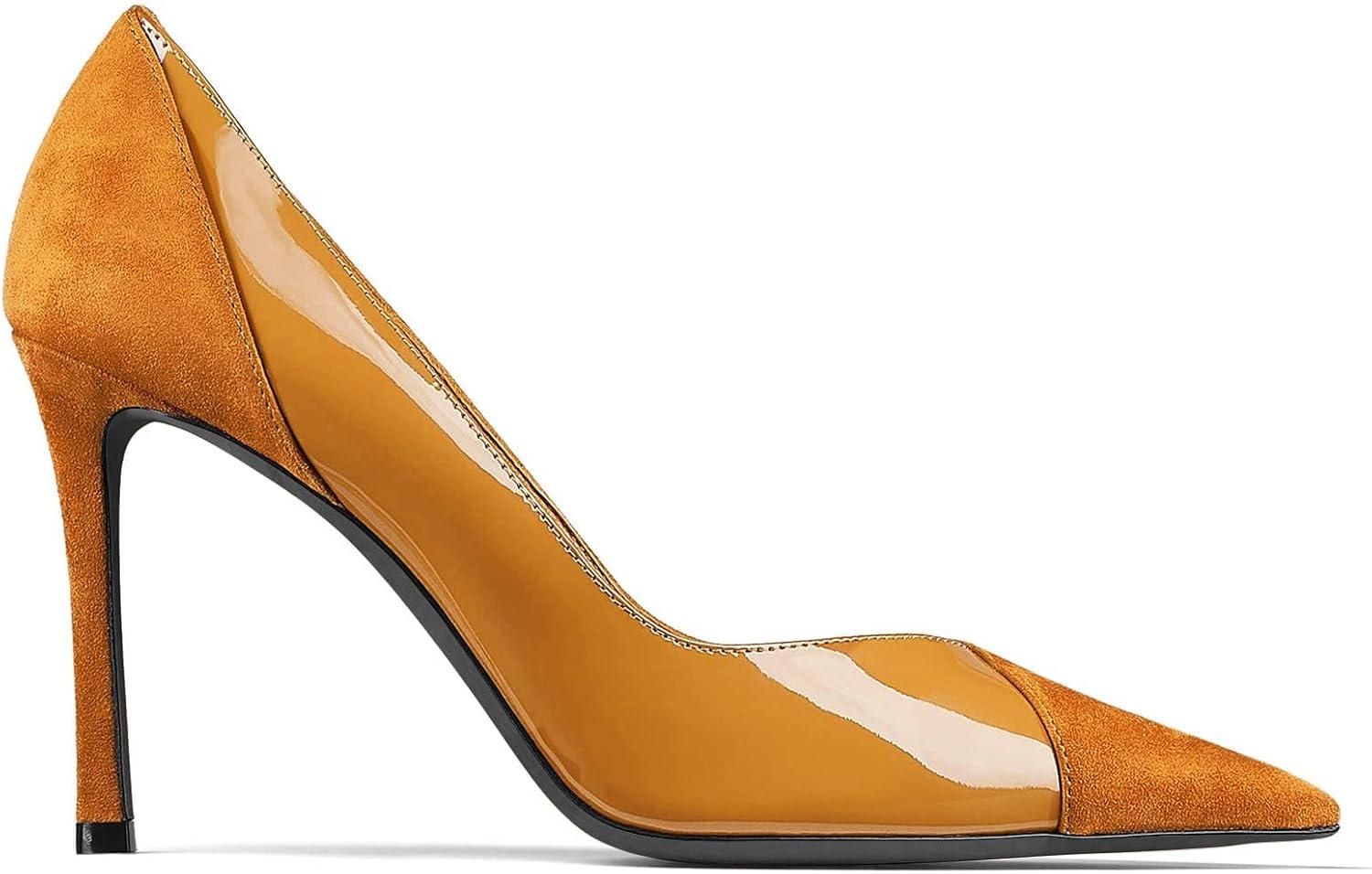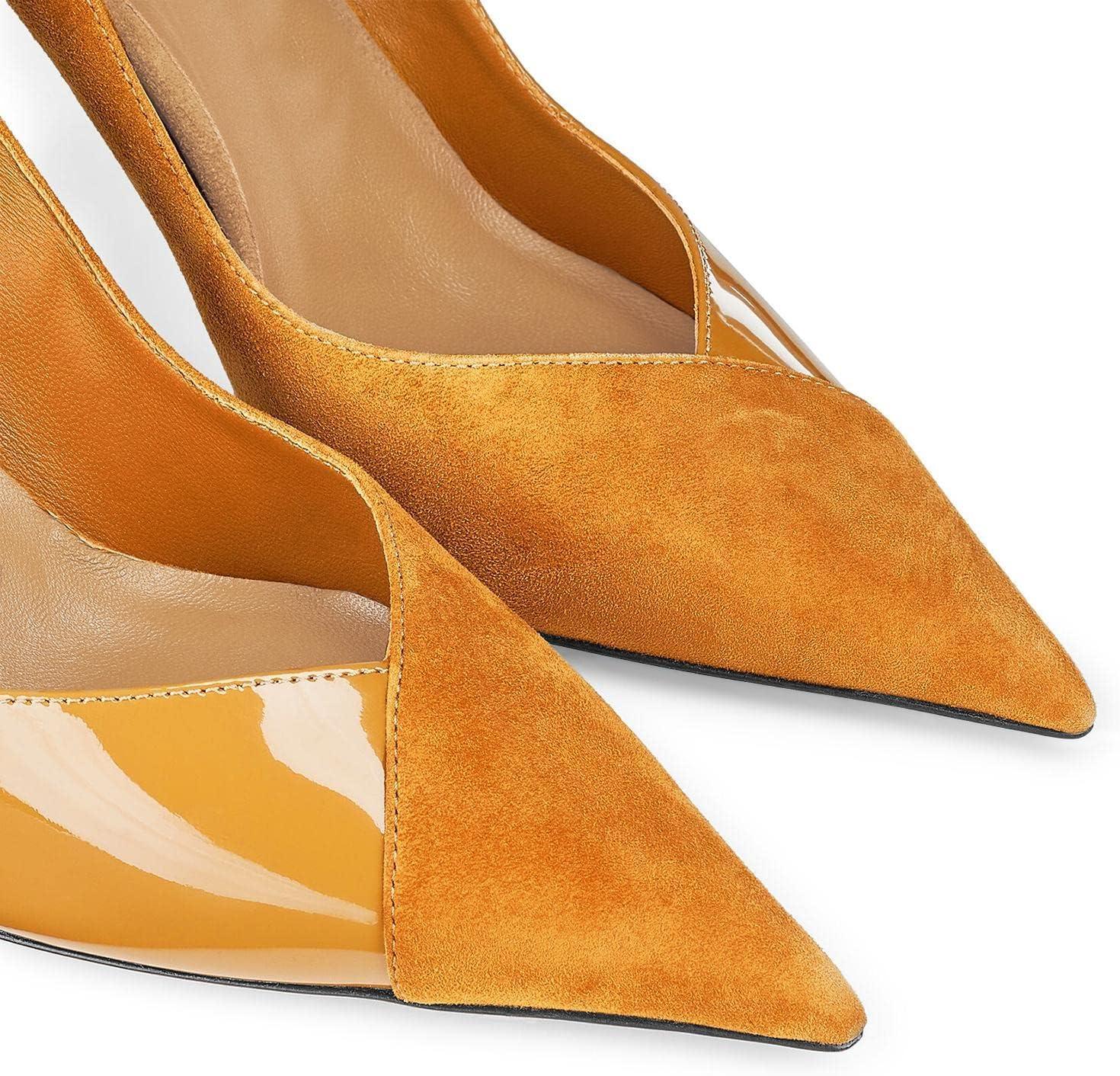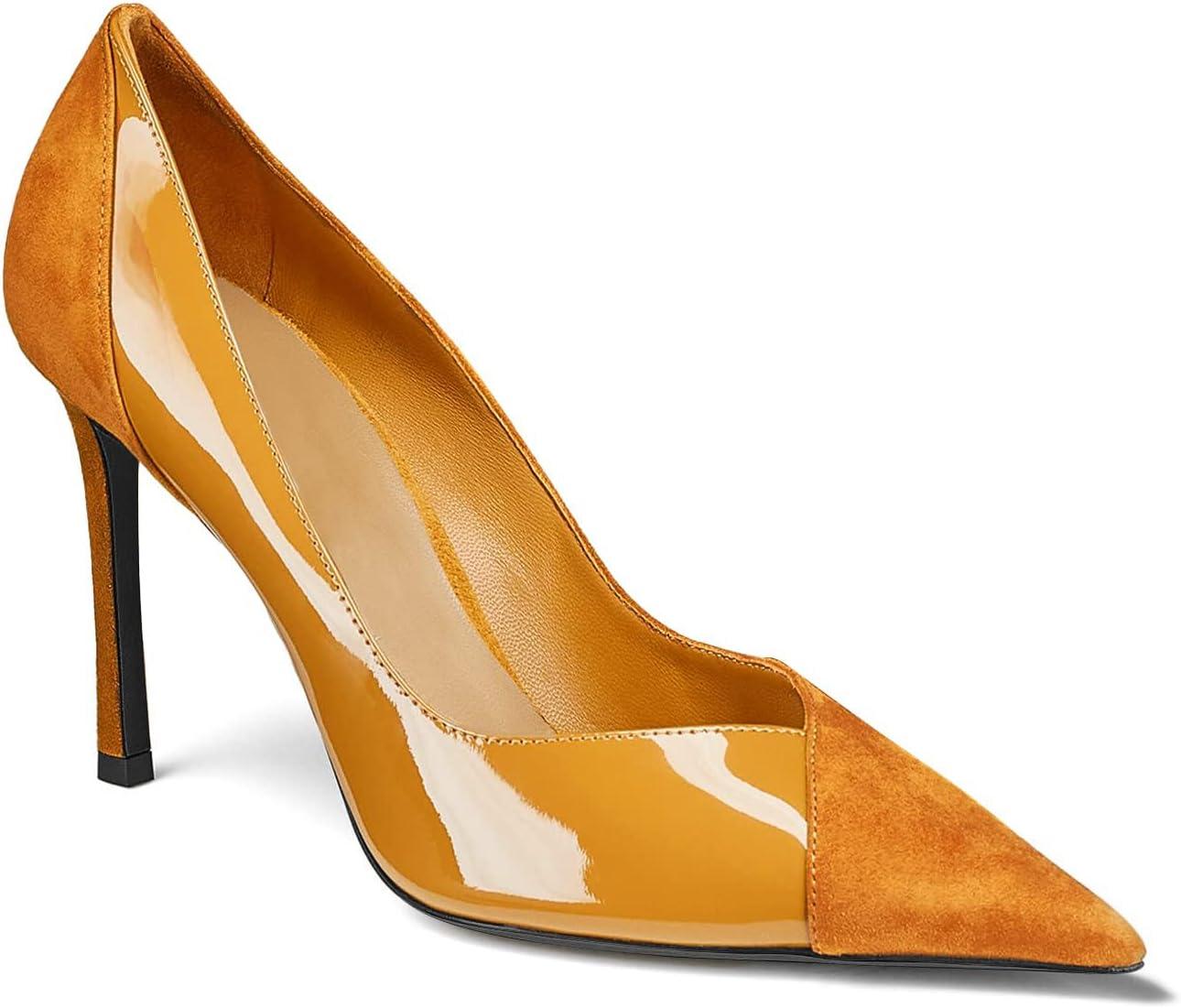 Coutgo Womens Pointed Toe High Heels Pumps Patent Suede Stiletto Heel Slip on Office Party Wedding Dress Shoes(Brown 02)