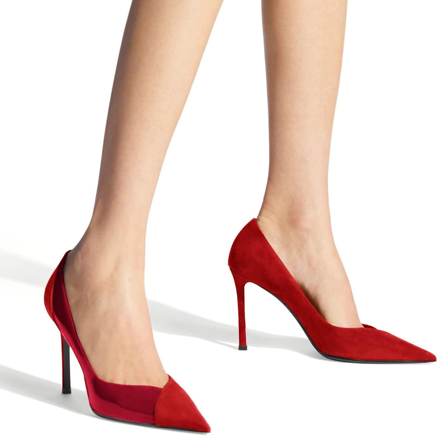 Get the Coutgo Womens Pointed Toe High Heels Pumps Patent Suede Stiletto Heel Slip on Office Party Wedding Dress Shoes(Red/Burgundy) you want at a price you can afford with our markdown sale.