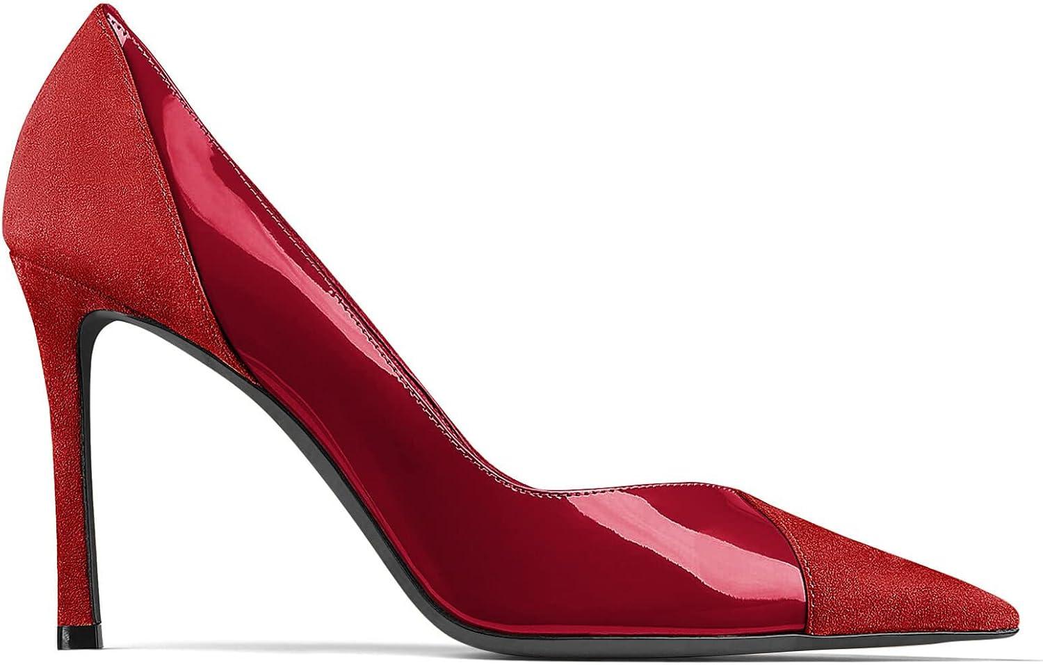 Coutgo Womens Pointed Toe High Heels Pumps Patent Suede Stiletto Heel Slip on Office Party Wedding Dress Shoes(Red/Burgundy)