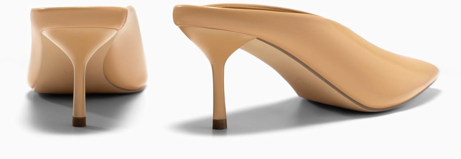 Coutgo Womens Pointed Toe Mules High Heels Sandals Slip On Clogs Summer Dress Shoes(Khaki)