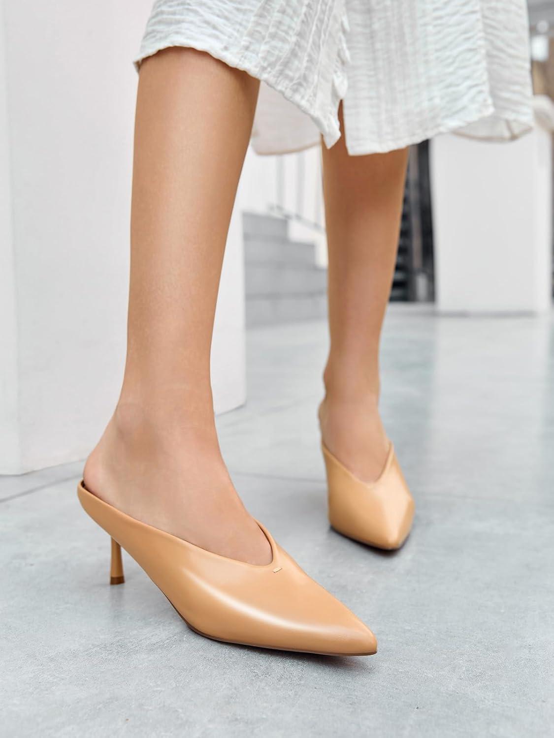 Don’t wait, get up to 50% off on Coutgo Womens Pointed Toe Mules High Heels Sandals Slip On Clogs Summer Dress Shoes(Khaki) during our end-of-season sale event.