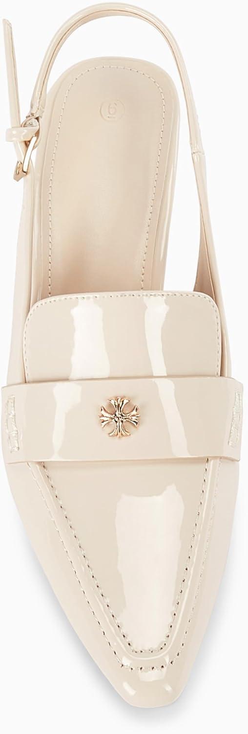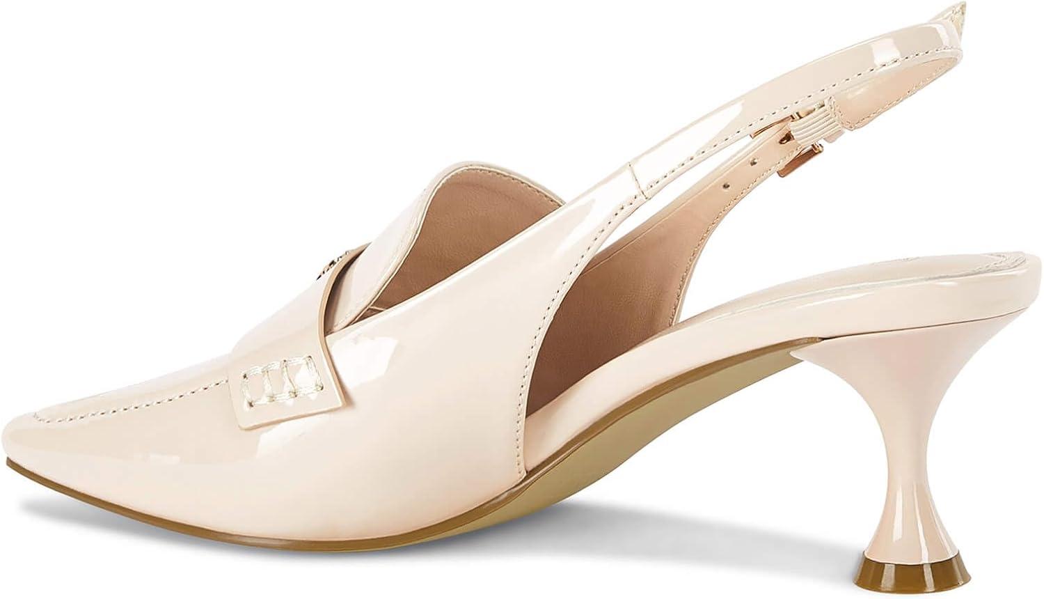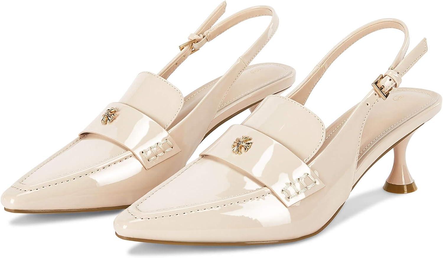 Coutgo Women’s Pointed Toe Sandals Slingback Kitten Heel Pumps Slip On Ankle Buckle Dress Shoes(Apricot)