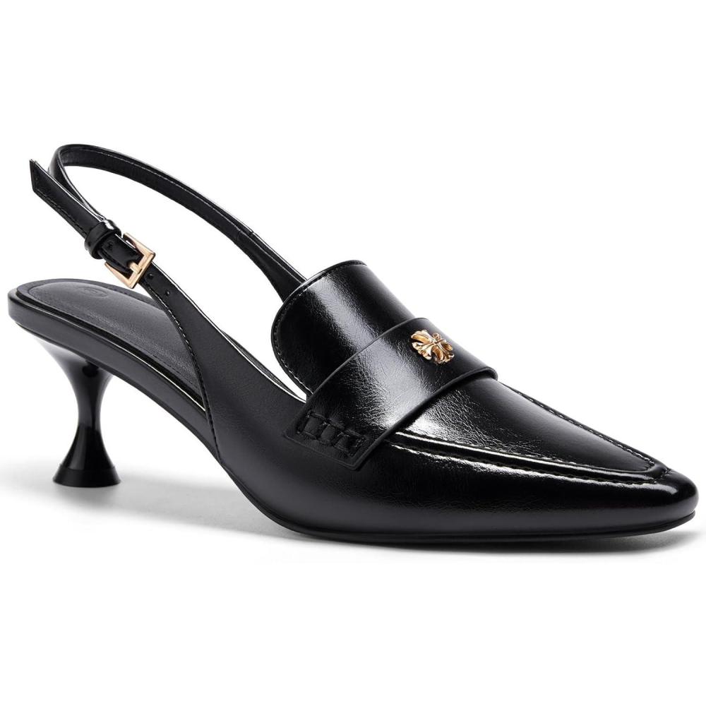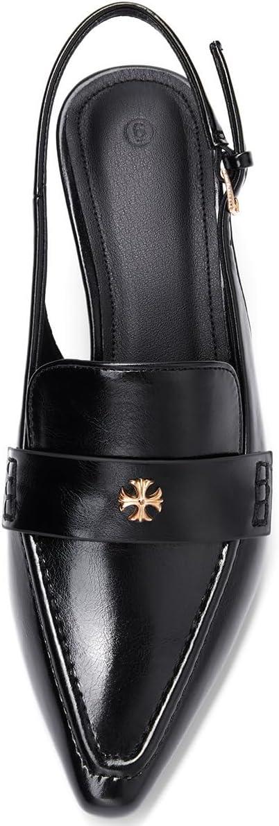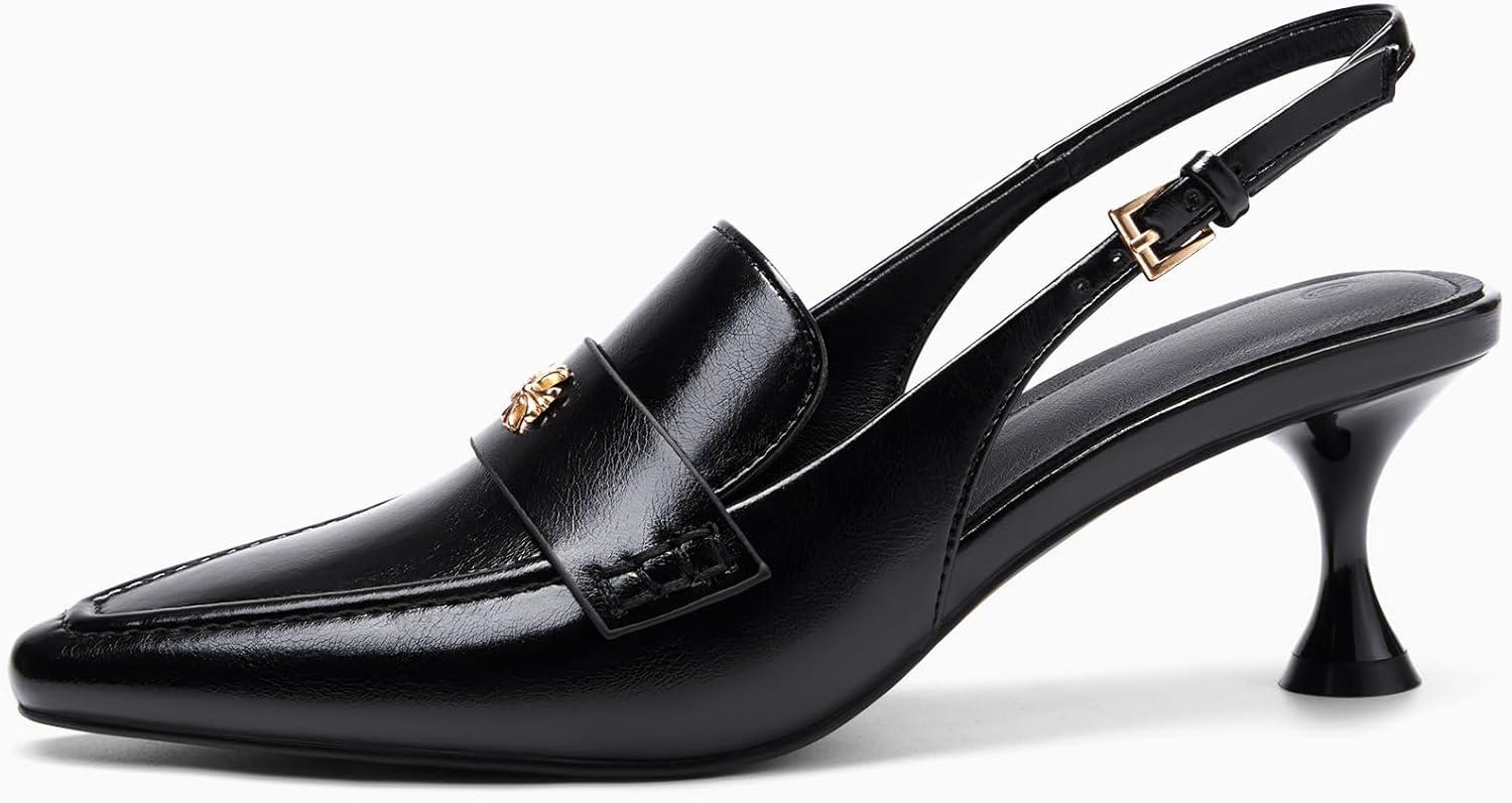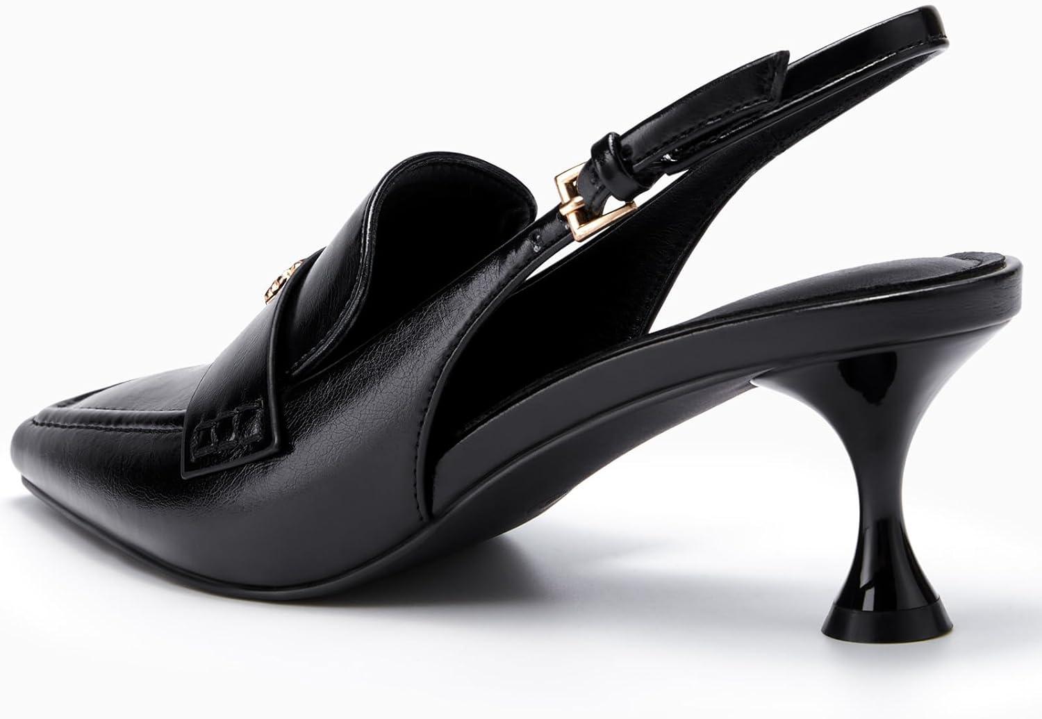 Coutgo Women’s Pointed Toe Sandals Slingback Kitten Heel Pumps Slip On Ankle Buckle Dress Shoes(Cool Black)