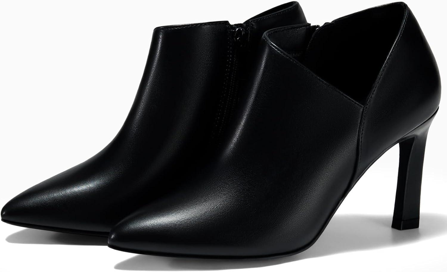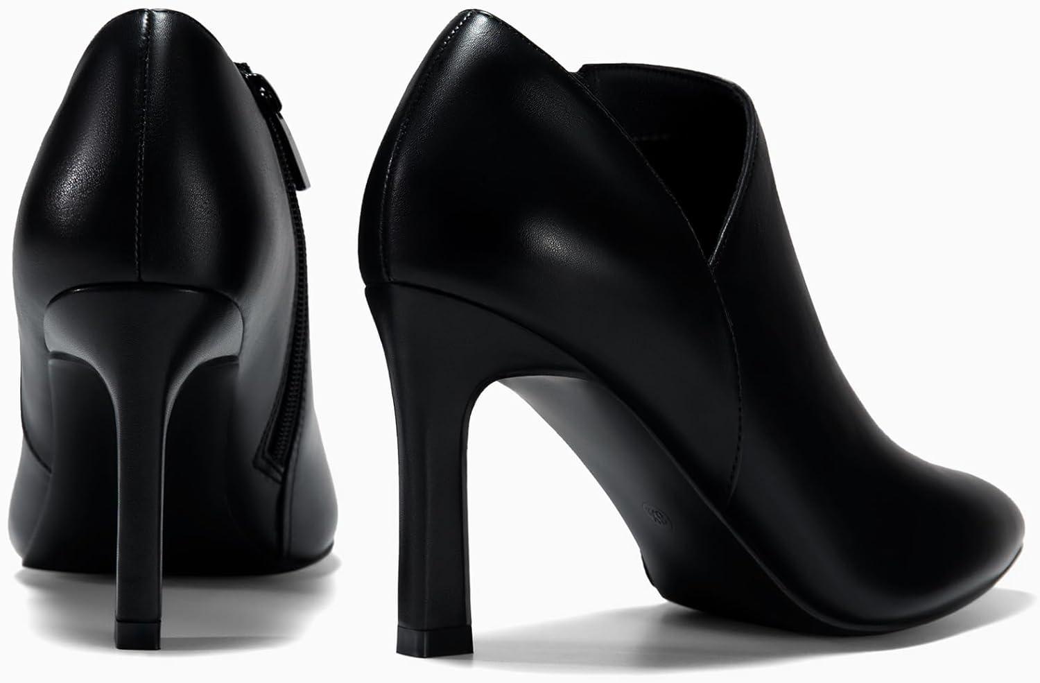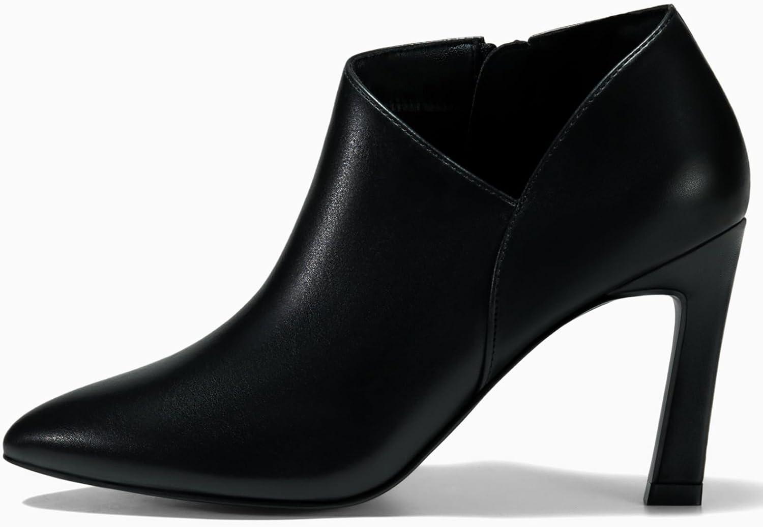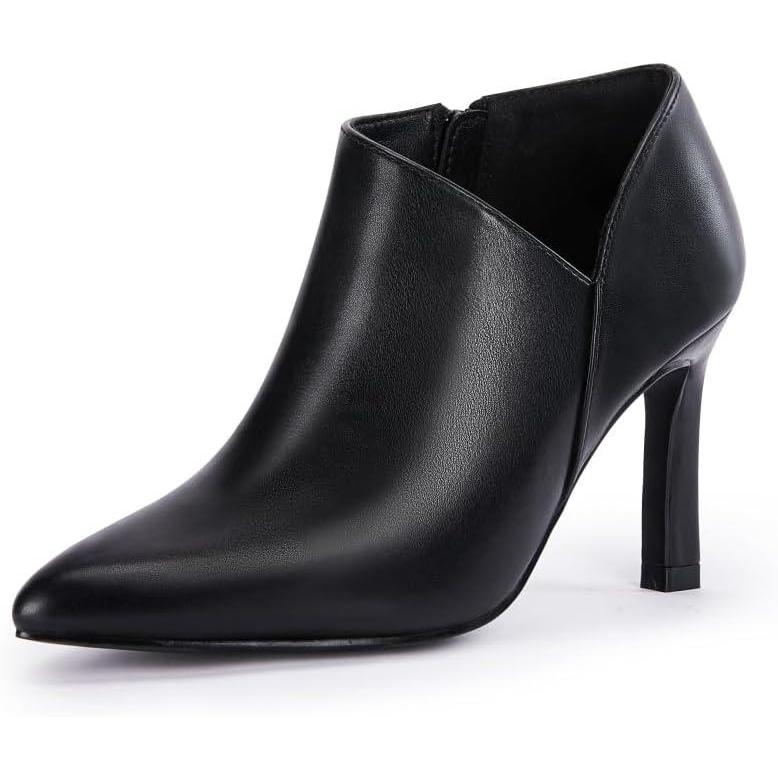Coutgo Womens Pointed Toe V Cut Ankle Boots Kitten Heel Side Zip Office Booties(Black-pu)