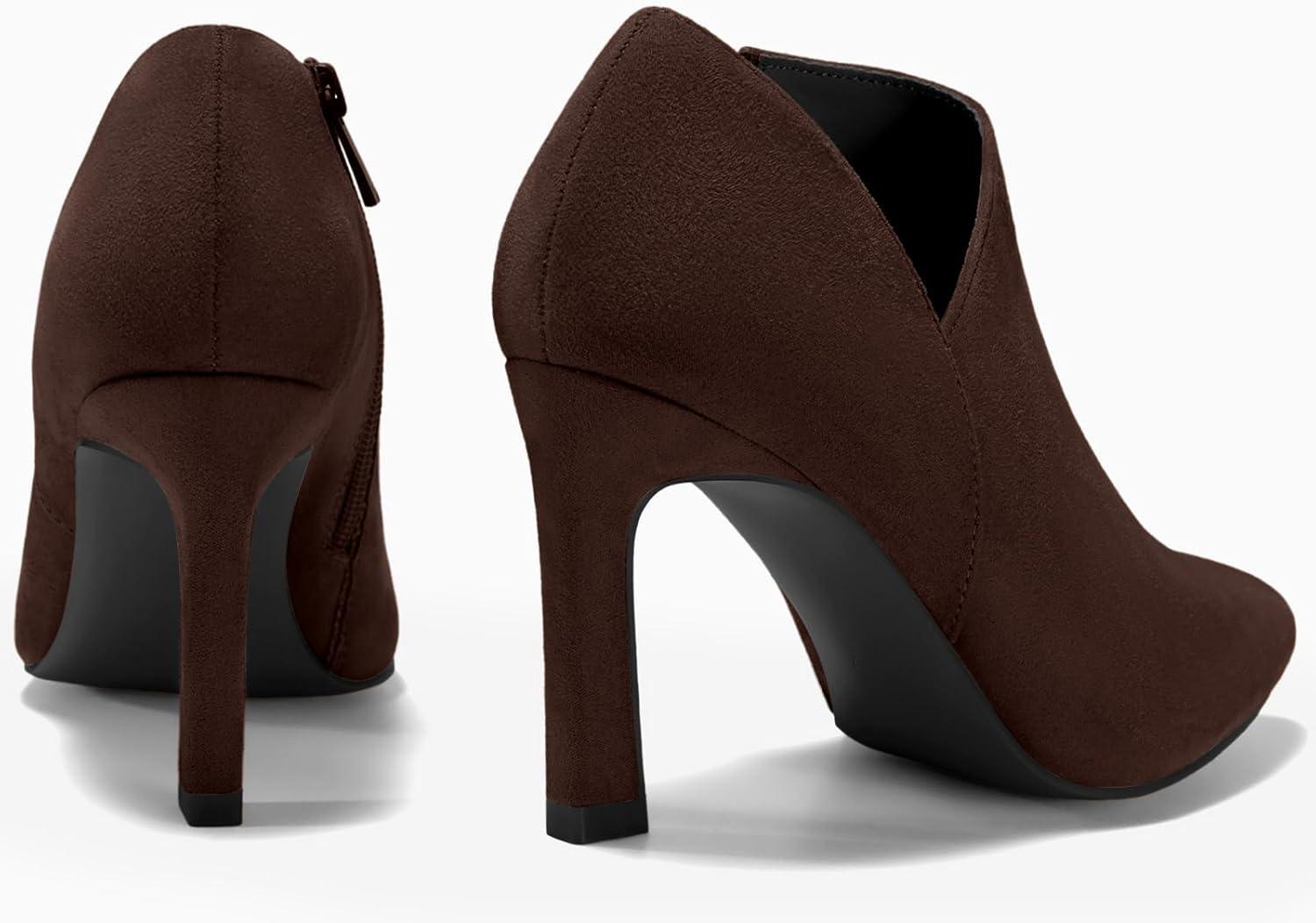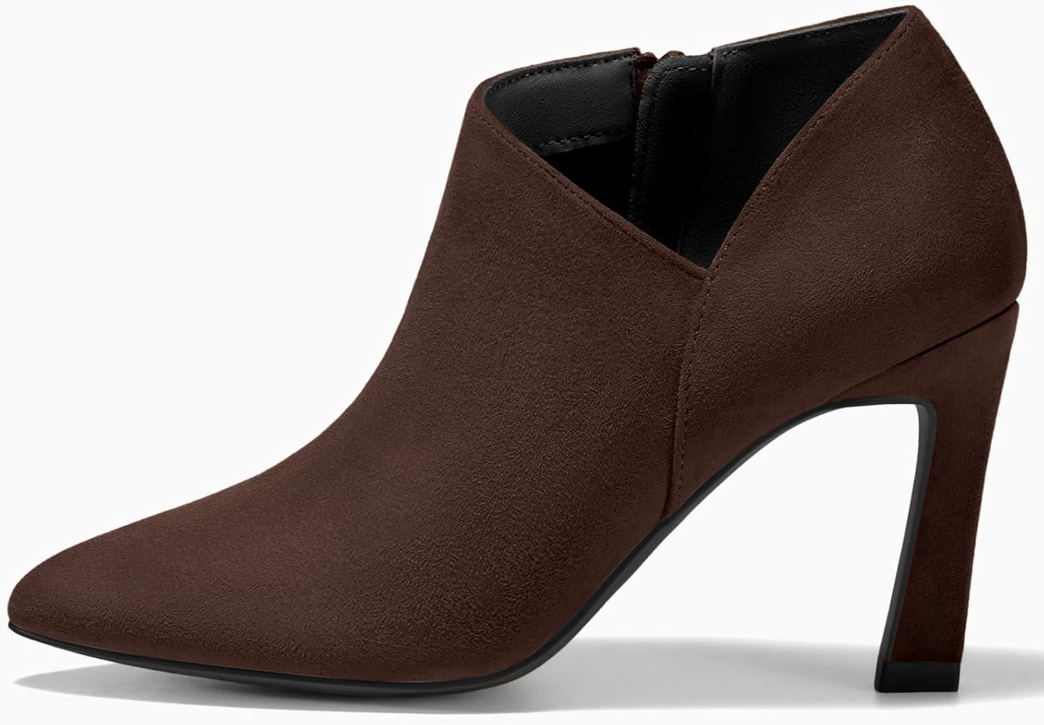Coutgo Womens Pointed Toe V Cut Ankle Boots Kitten Heel Side Zip Office Booties(Chocolate)