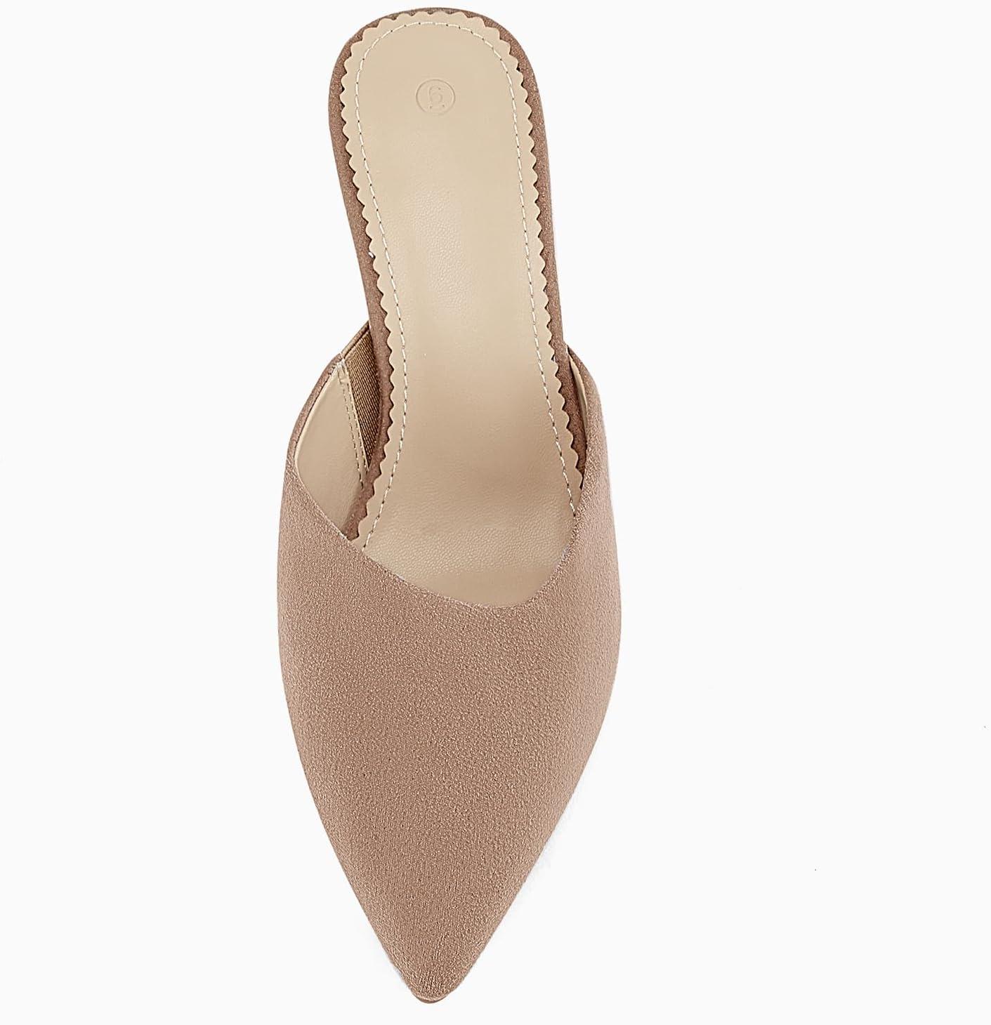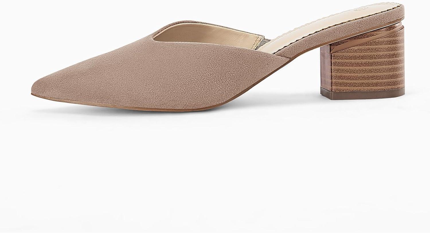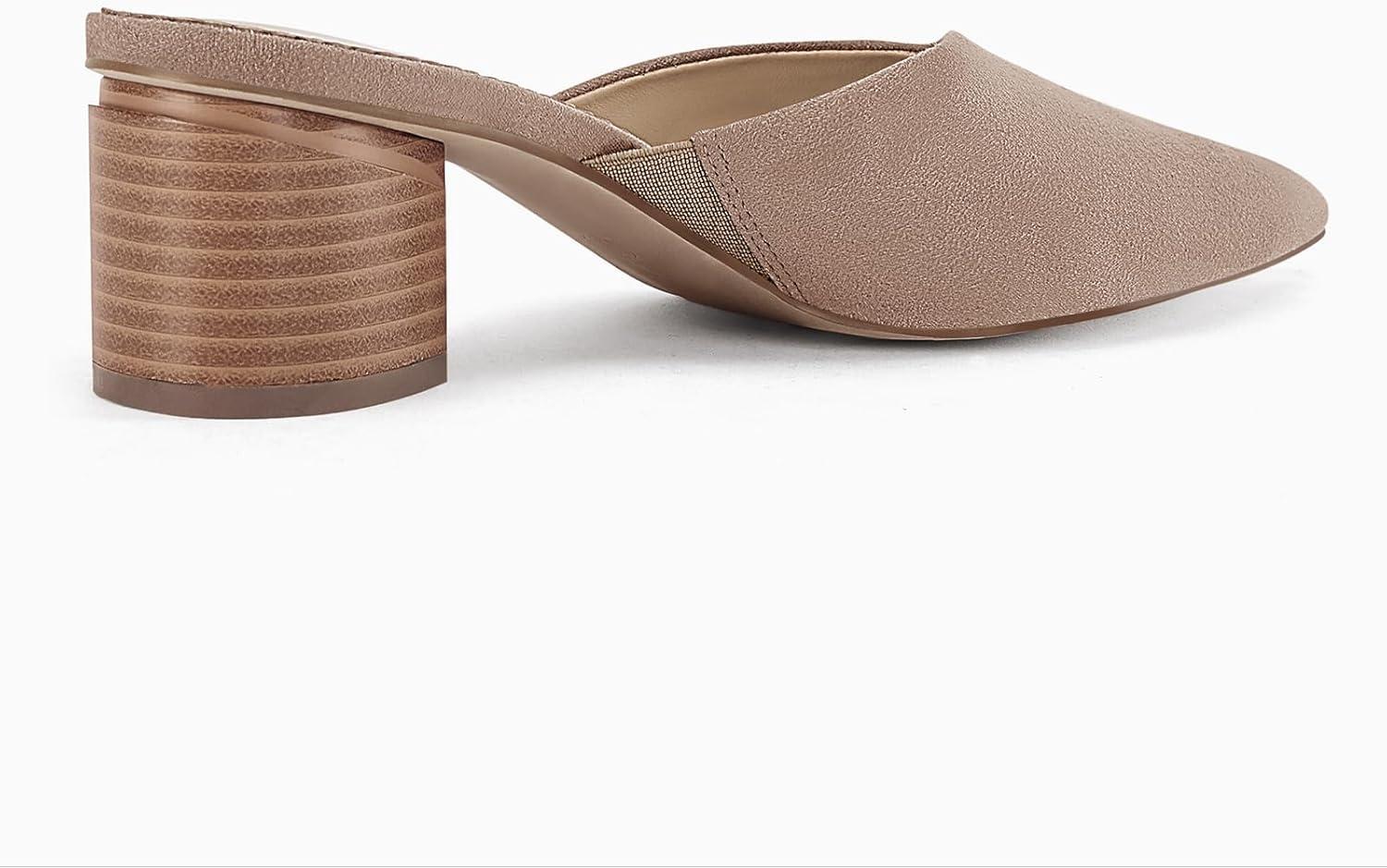 Coutgo Womens Pointed Toe V Cut Mules Chunky Block Heels Slip On Clogs Fashion Office Slides Shoes(Camel)