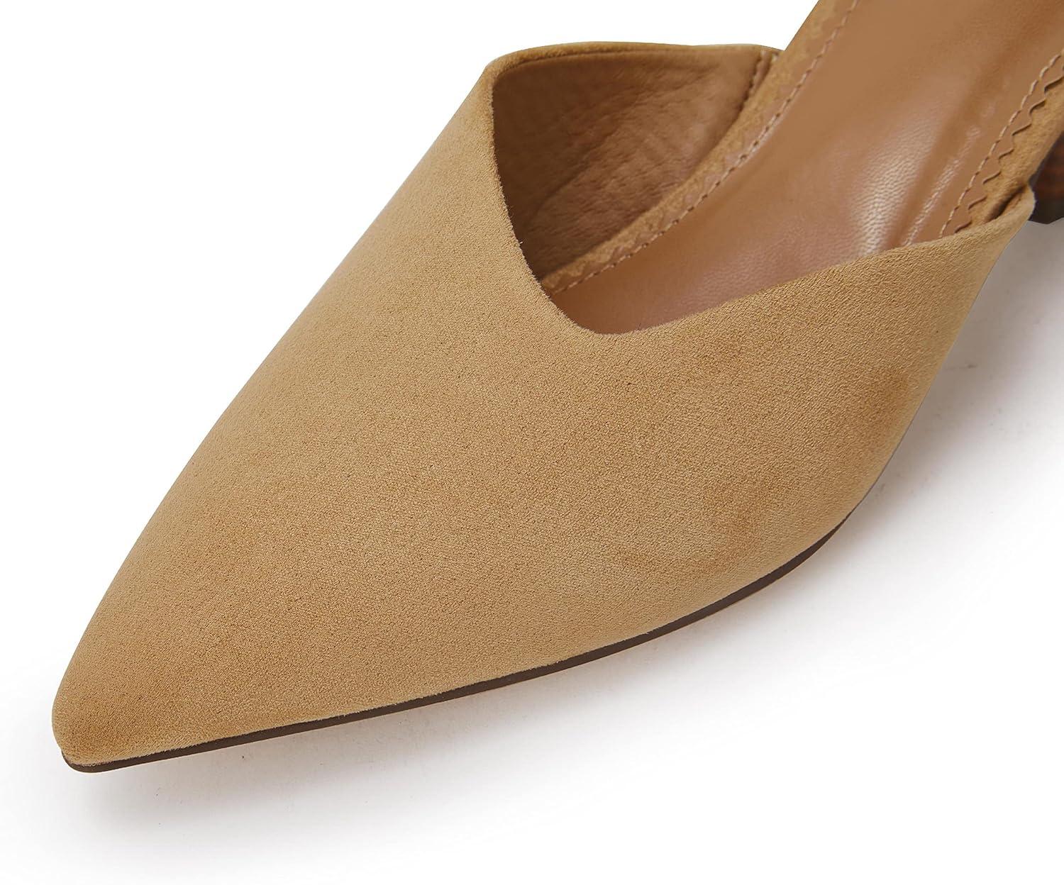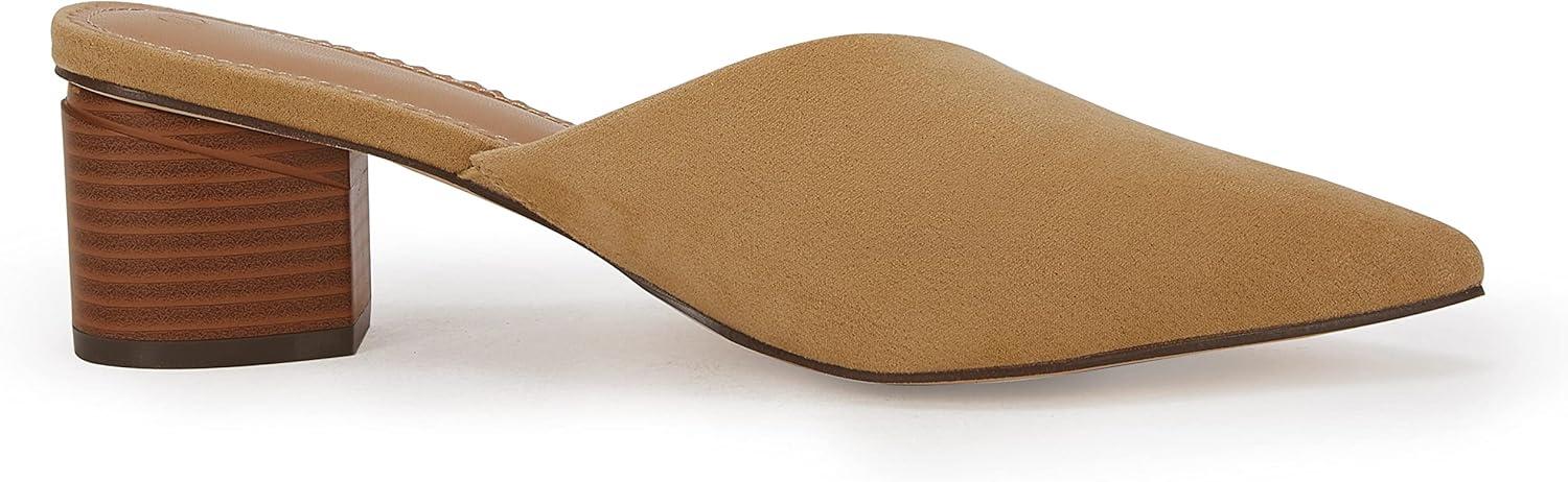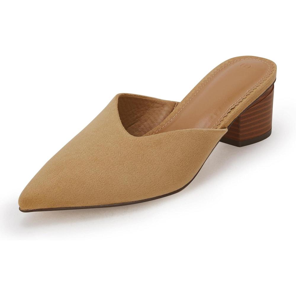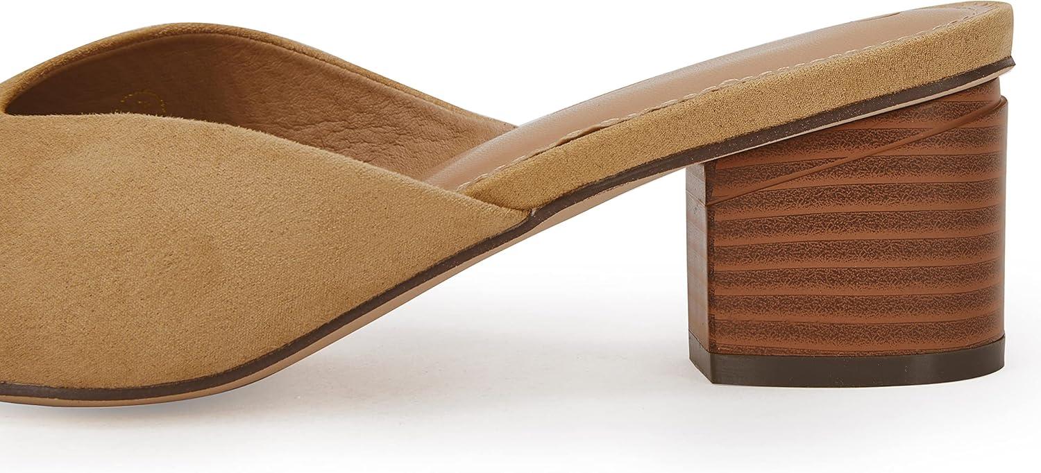 Coutgo Womens Pointed Toe V Cut Mules Chunky Block Heels Slip On Clogs Fashion Office Slides Shoes(Khaki)