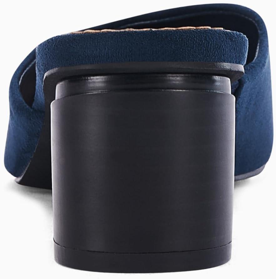 Coutgo Womens Pointed Toe V Cut Mules Chunky Block Heels Slip On Clogs Fashion Office Slides Shoes(Navy)
