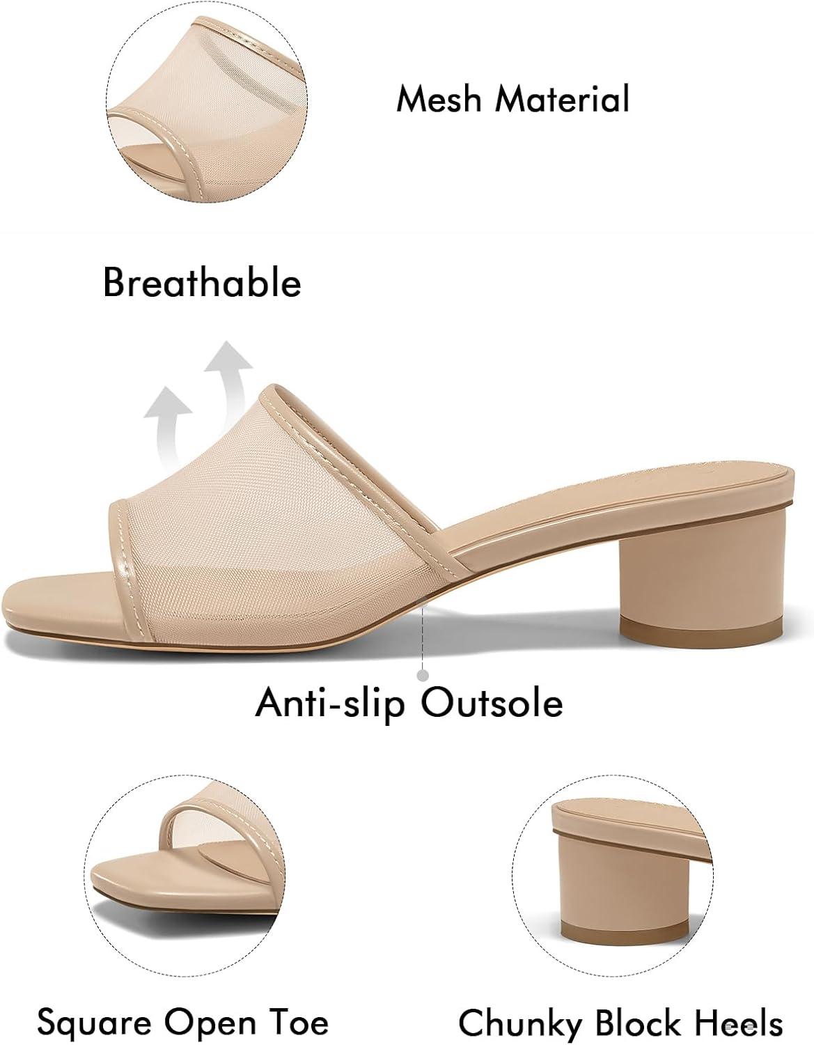 Get up to 50% off on Coutgo Womens Slide Sandals Mesh Chunky Heels Mules Square Open Toe Slip On Summer Dress Shoes(Khaki) styles during our spring sale event.