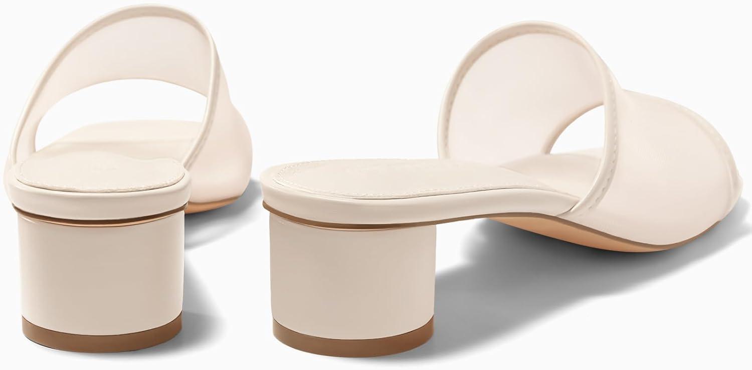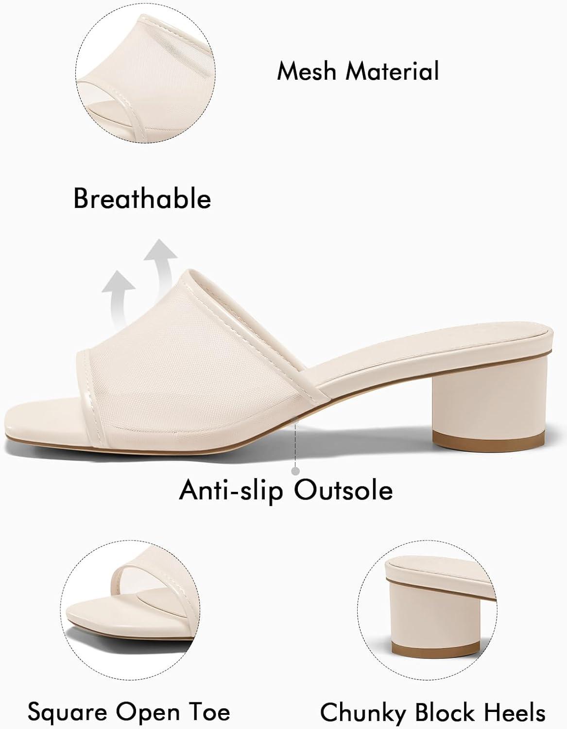 Coutgo Womens Slide Sandals Mesh Chunky Heels Mules Square Open Toe Slip On Summer Dress Shoes(Nude)