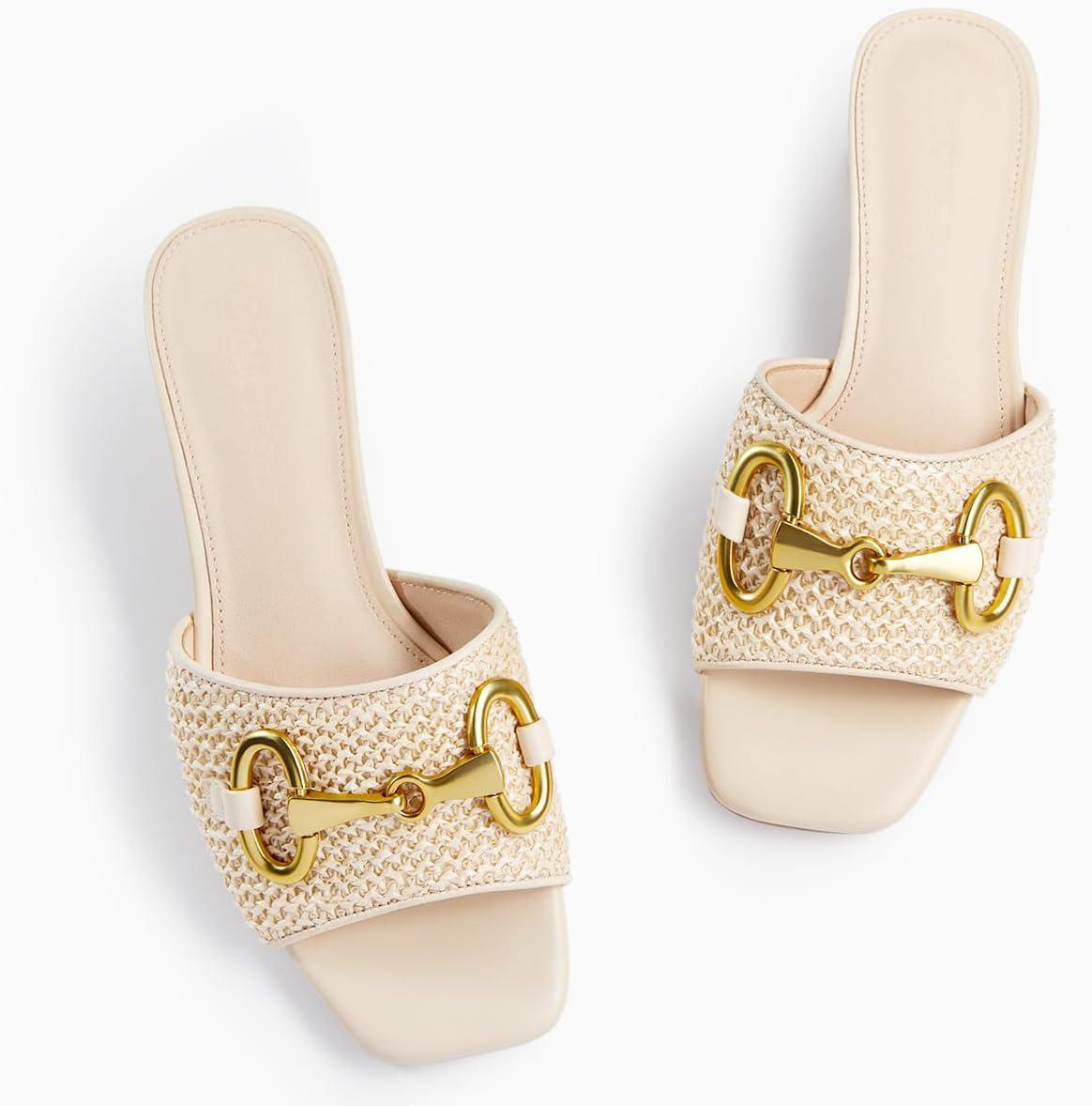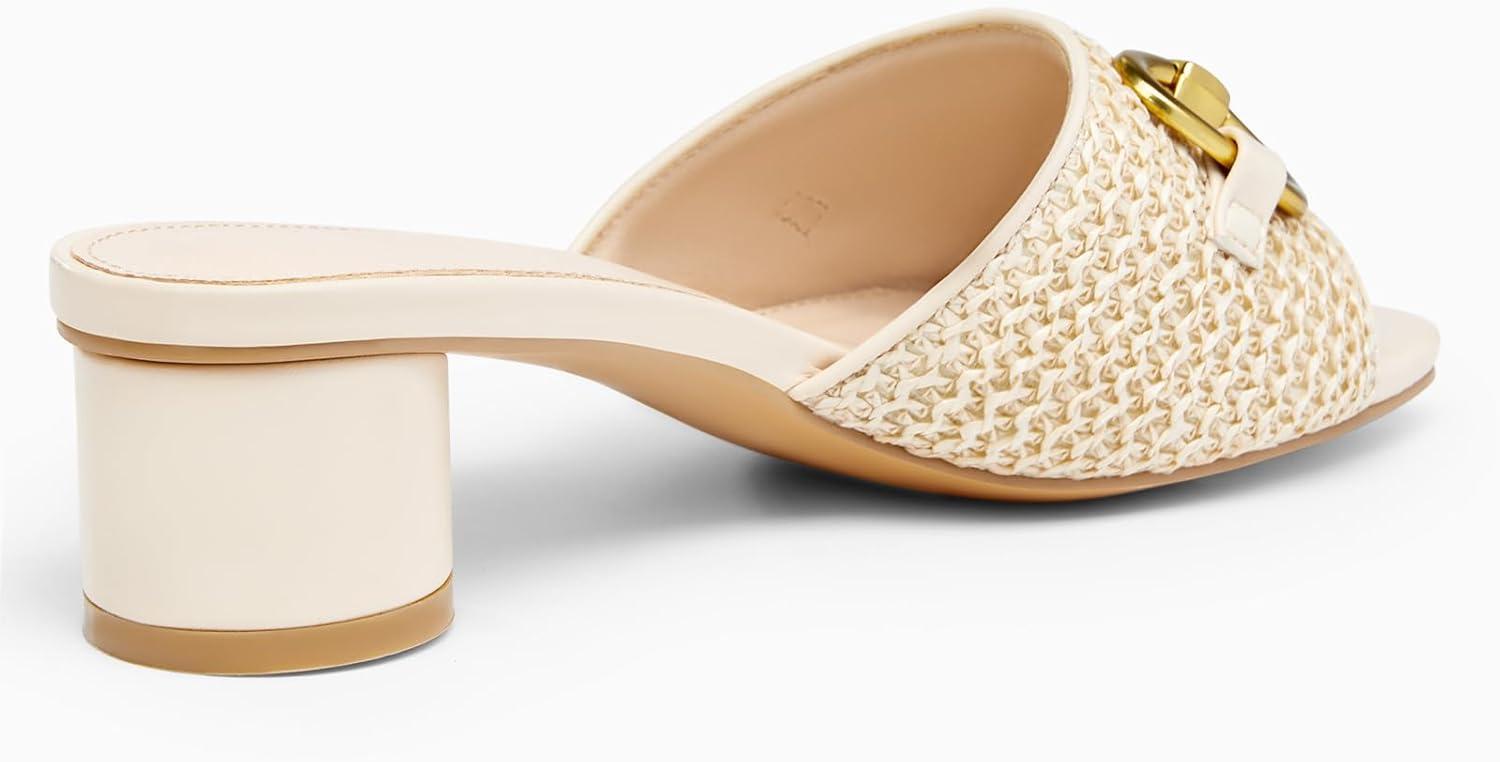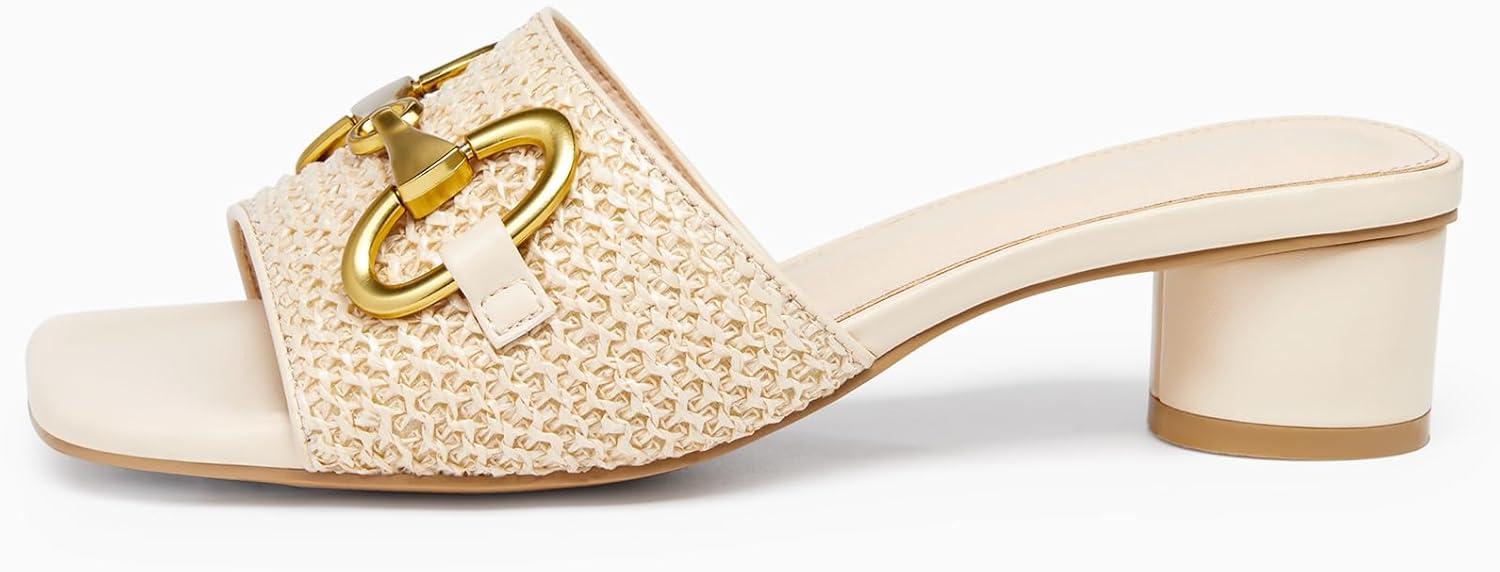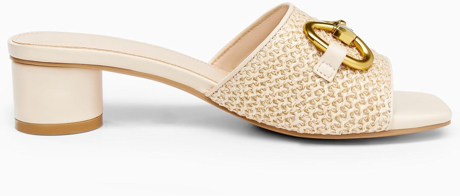 Coutgo Women’s Slide Sandals Square Open Toe Slip on Comfortable Mules Block Low Heel Metal Chain Dressy Shoes(Apricot)