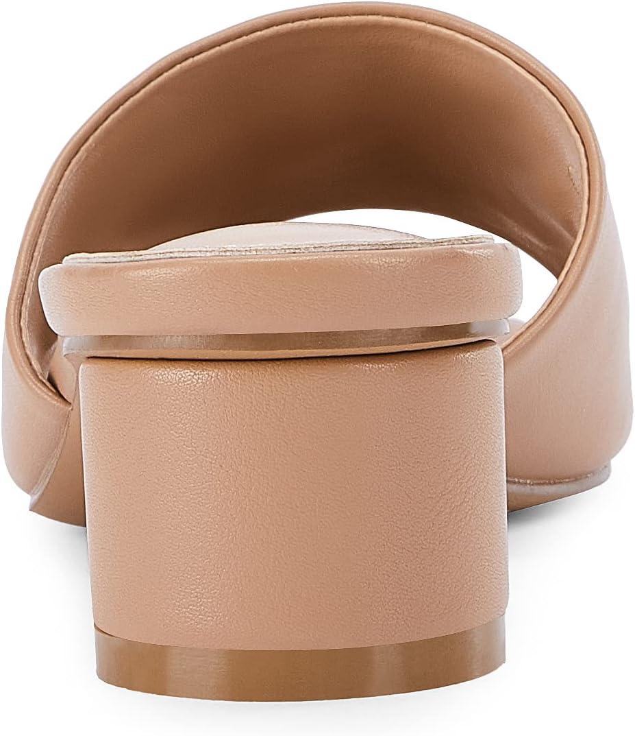 Coutgo Women’s Slide Sandals Square Open Toe Slip on Comfortable Mules Block Low Heel Metal Chain Dressy Shoes(Khaki)