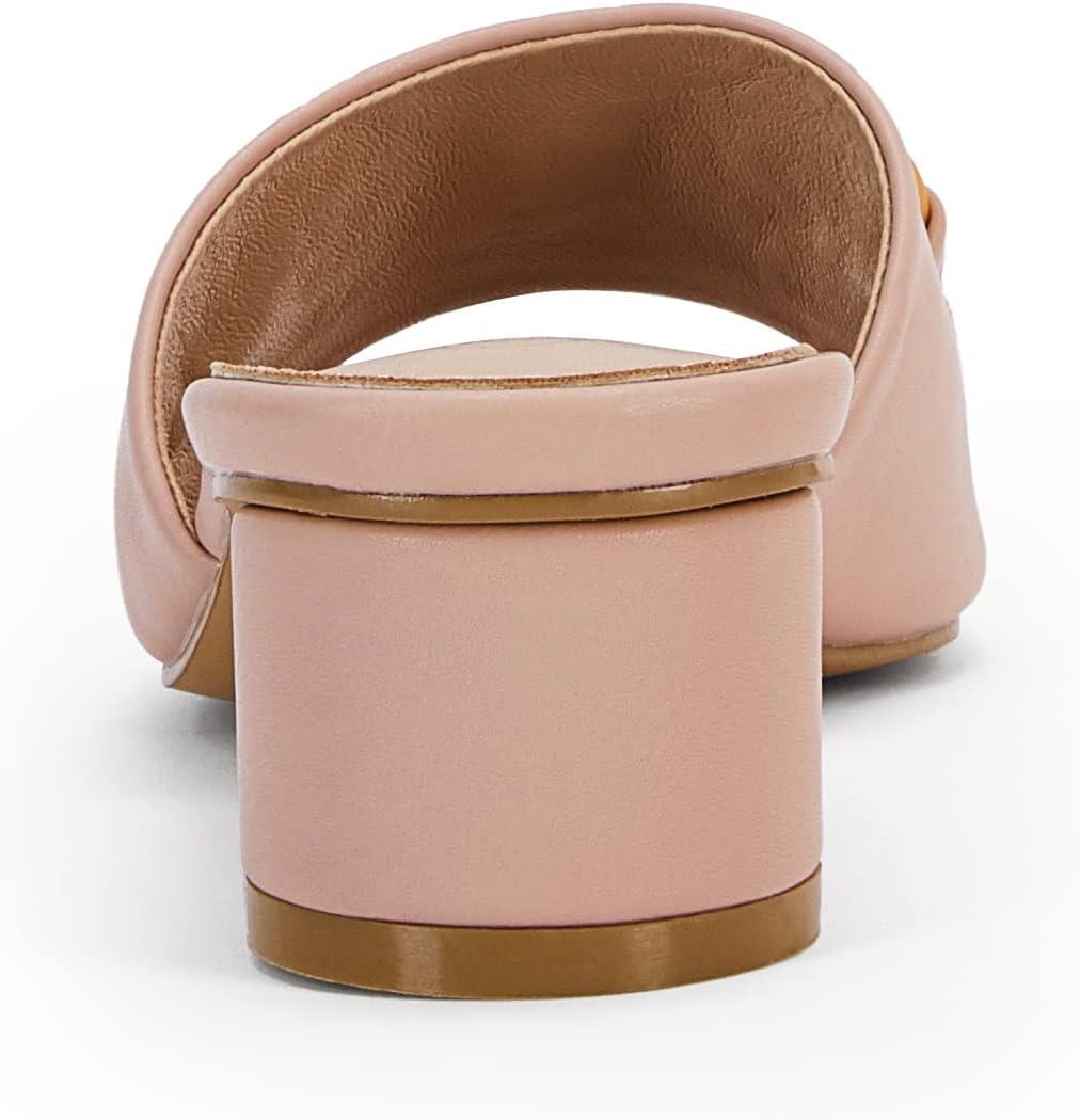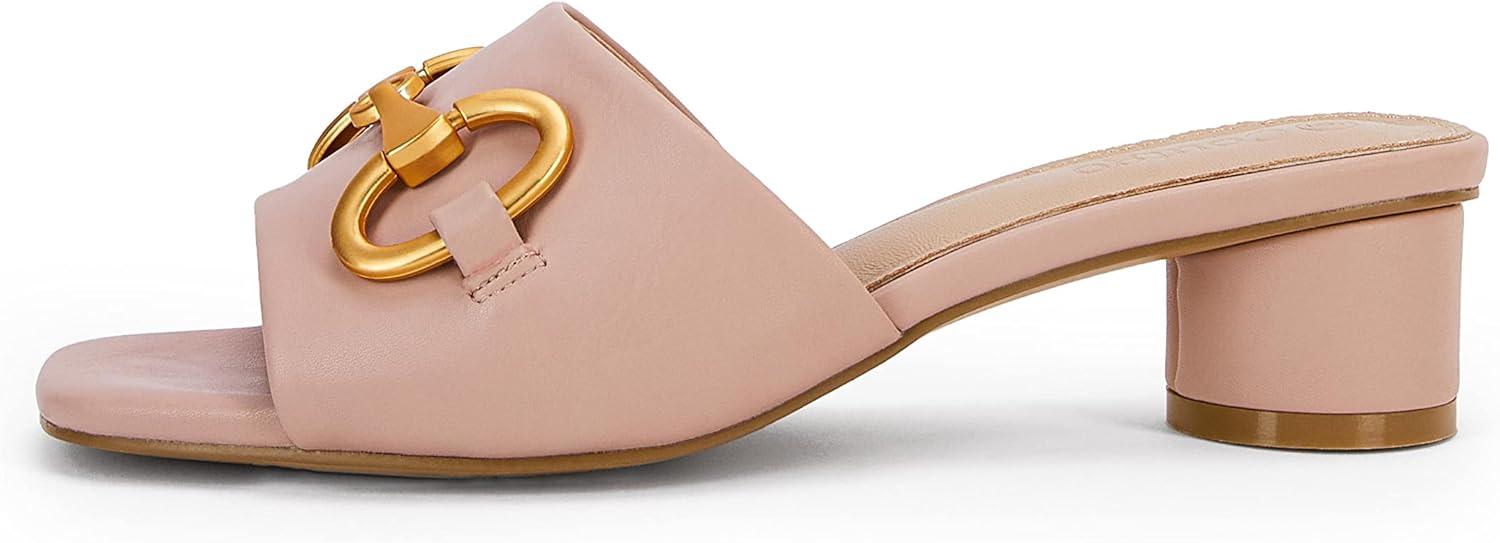 Coutgo Women’s Slide Sandals Square Open Toe Slip on Comfortable Mules Block Low Heel Metal Chain Dressy Shoes(Light Pink)
