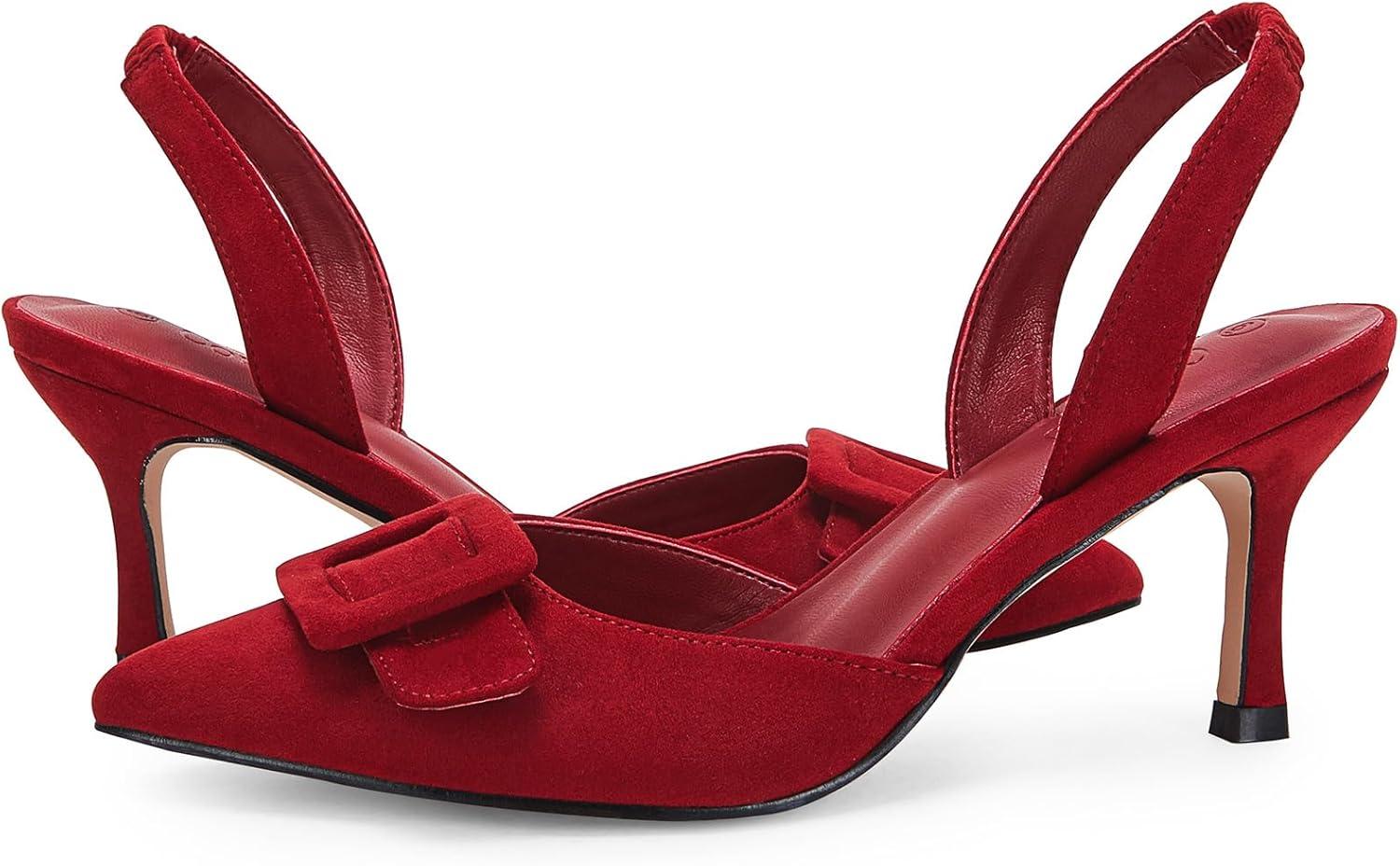 Our holiday sale features the best deals on Coutgo Womens Slingback Heels Kitten Heel Pumps Dress Shoes Sling Back Closed Pointed Toe Suede Wedding Party Sandals(Burgundy) and accessories. Shop now and save!