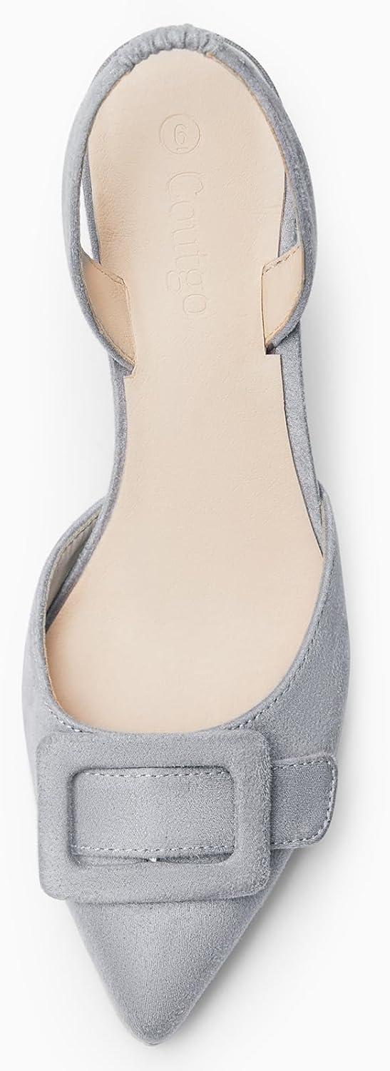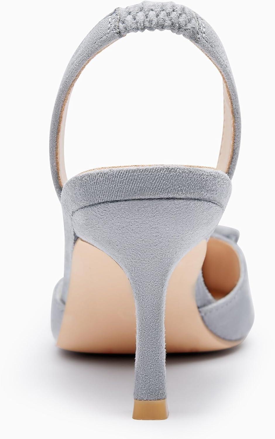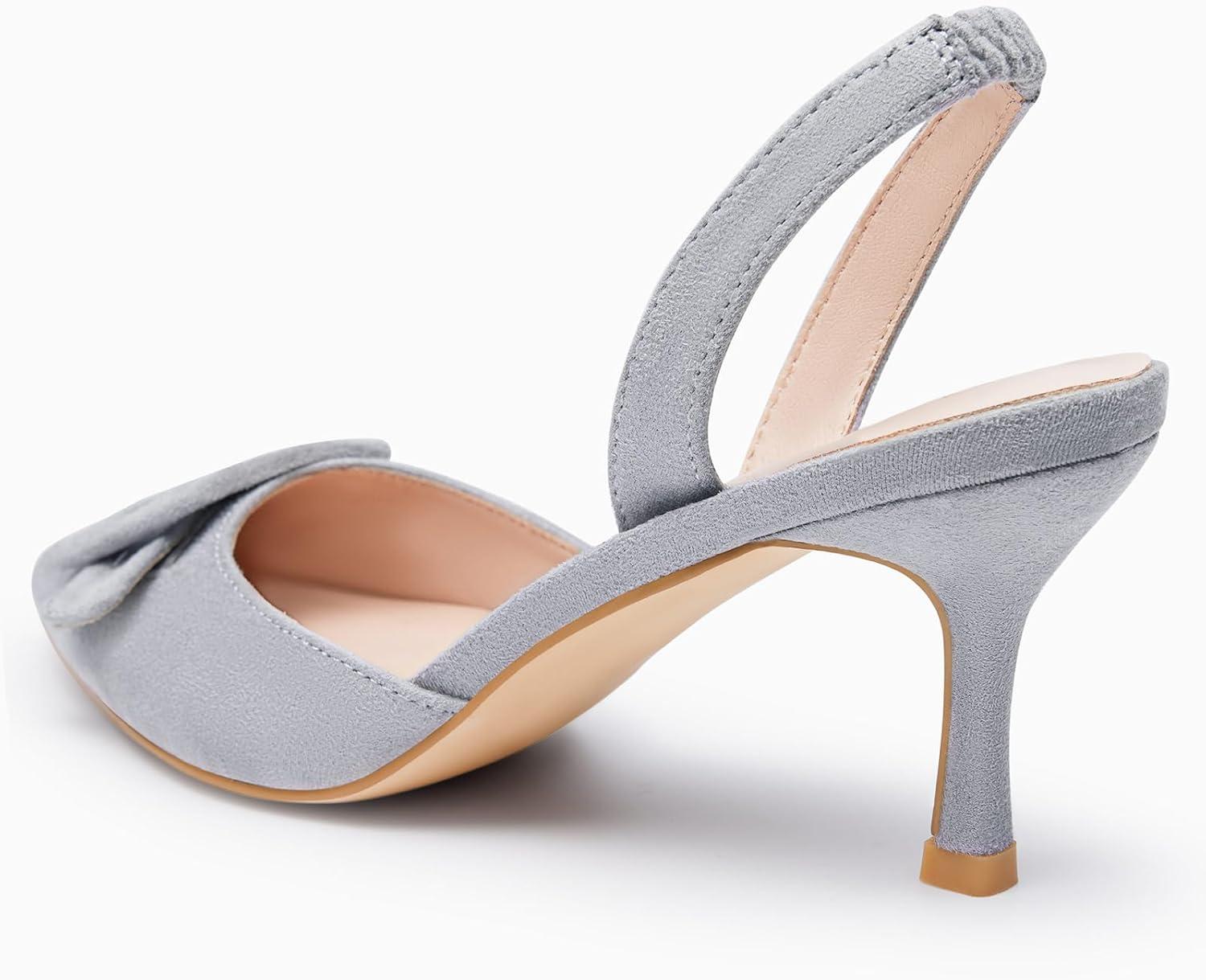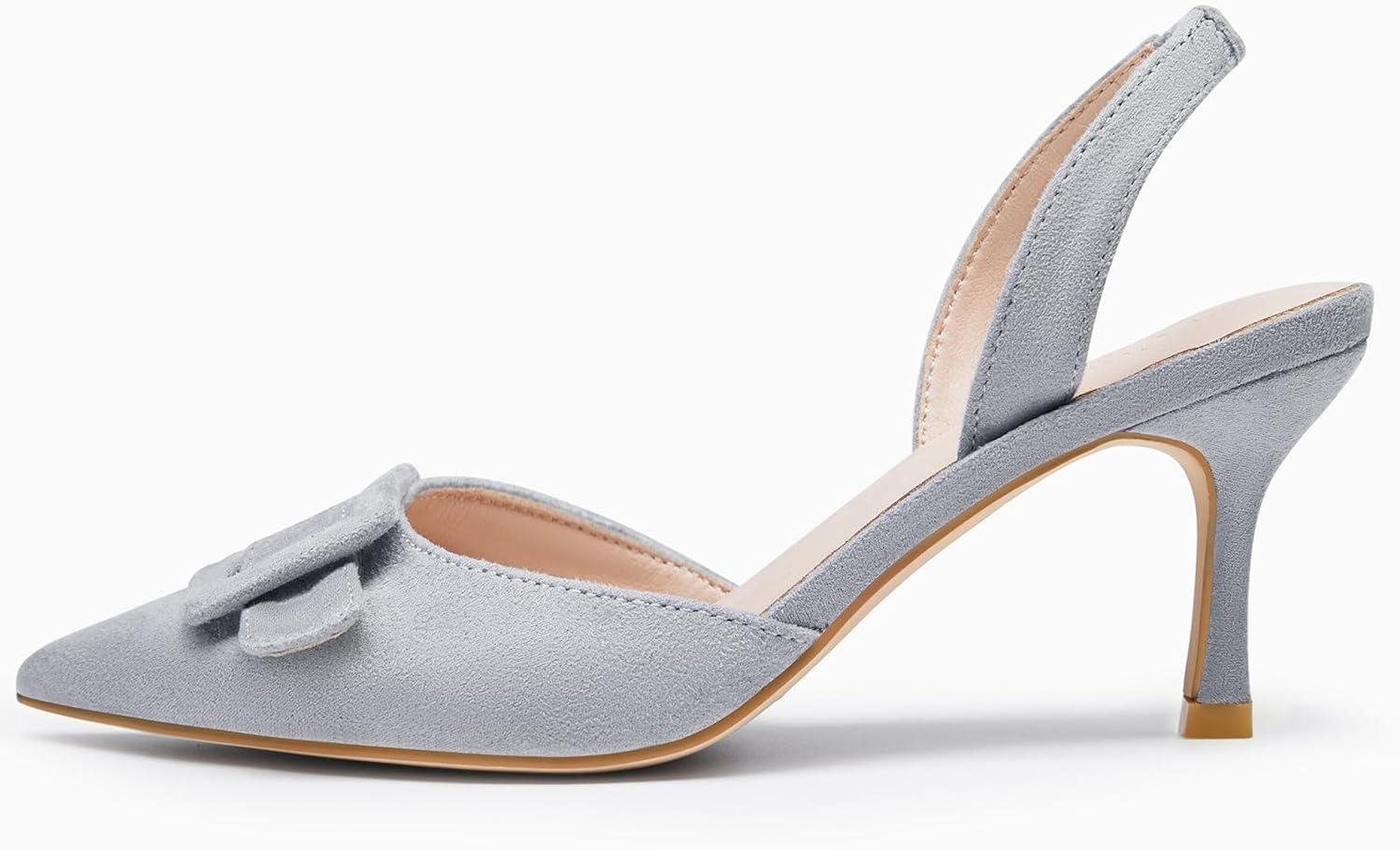 Coutgo Womens Slingback Heels Kitten Heel Pumps Dress Shoes Sling Back Closed Pointed Toe Suede Wedding Party Sandals(Grey)