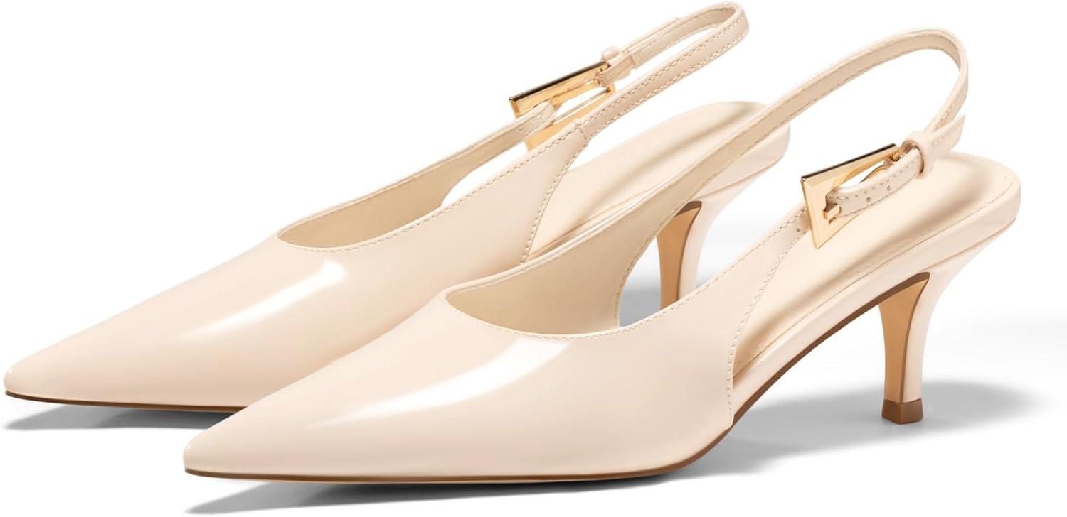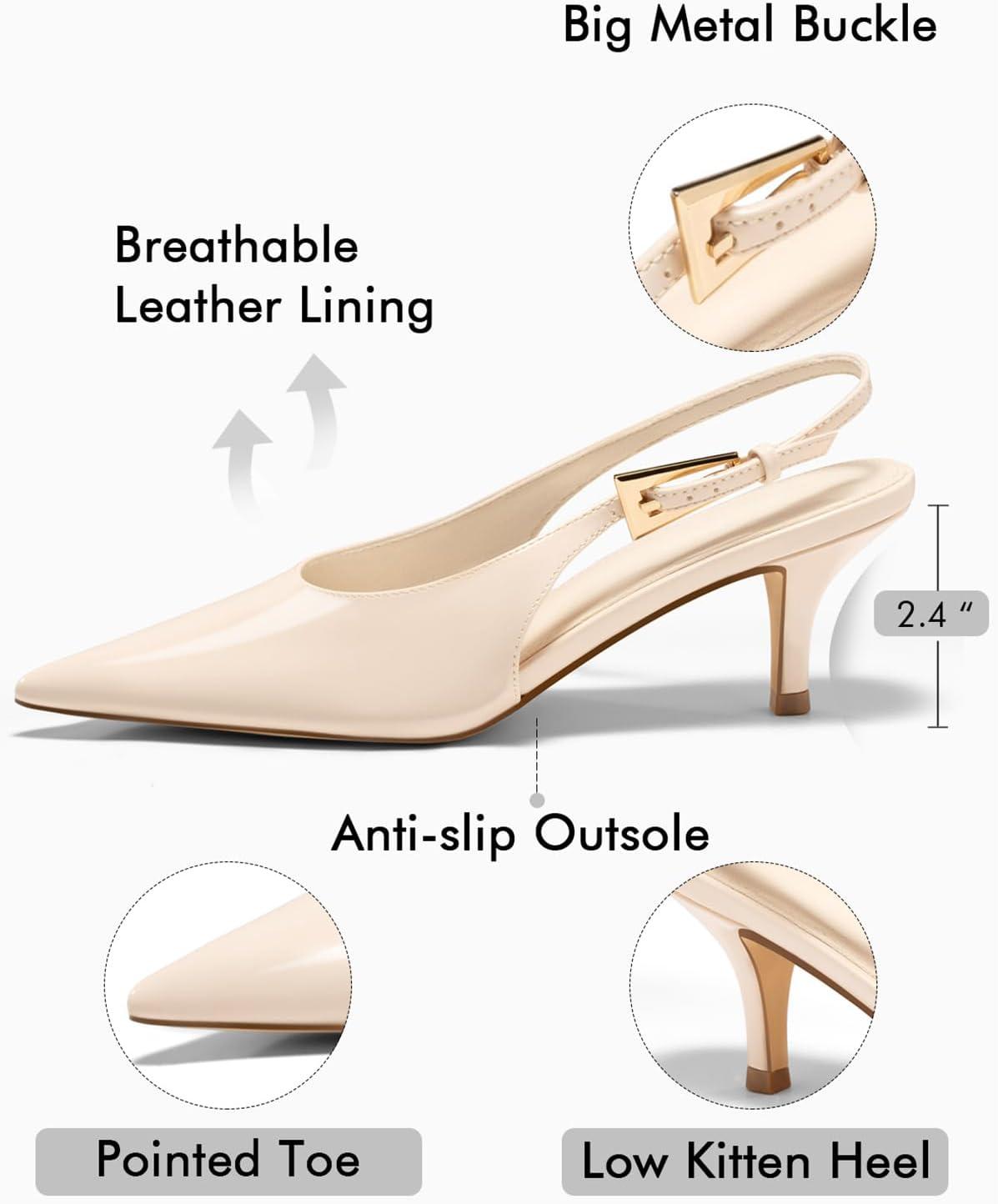 Get your hands on our newest Coutgo Womens Slingback Heels Kitten Low Heel Dress Shoes Closed Pointed Toe Buckle Pumps Work Wedding Shoes(Beige) and enjoy a limited-time discount offer.